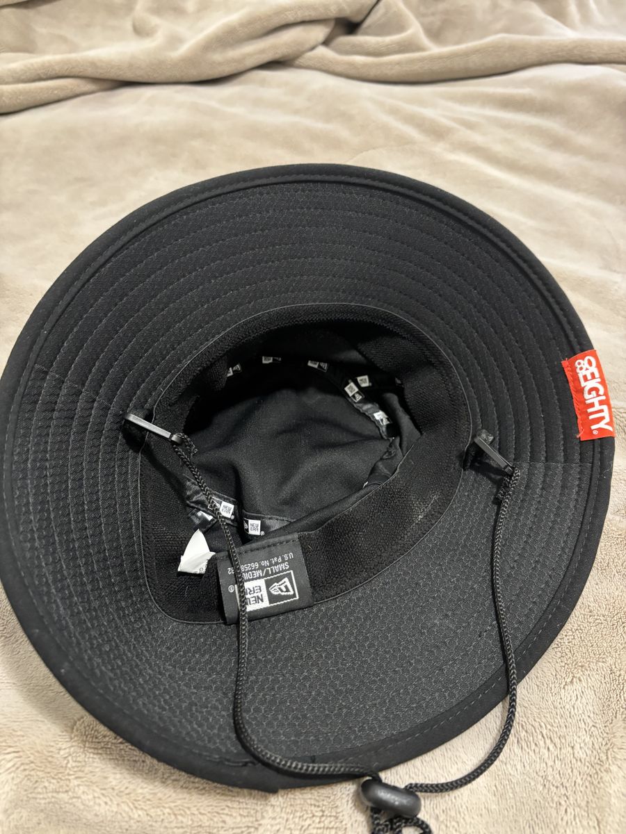 VenmoBlack bucket hat, size Small/Medium, adjustable drawcords and able to detach (pull off the hooks)
