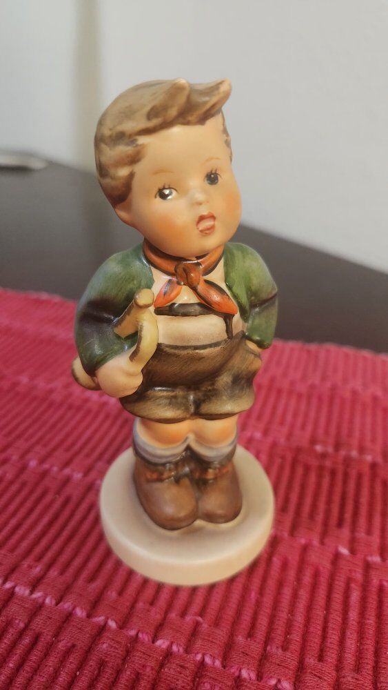 VenmoHAND PAINTED IN GERMANY! Trumpet Boy" Goebel Hummel Figurine #97. This iconic piece captures a quiet moment of anticipation, featuring a young boy clutching his trumpet as he prepares for a musical recital. It is one of the most beloved and enduring designs in the M.I. Hummel catalog, representing the innocence and dedication of childhood pursuits. *Hummels are Made in China! NOT THIS ONE! GENUINE 1960s piece.
