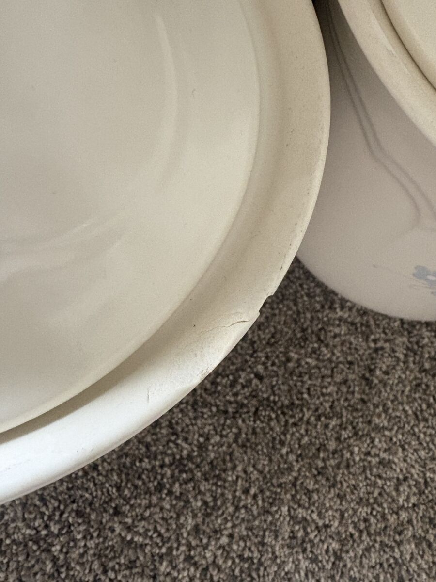 The set is in great overall shape, with only a couple of small chips on the rim of two canisters (please see photos for details). The chips are at the top and do not affect functionality.