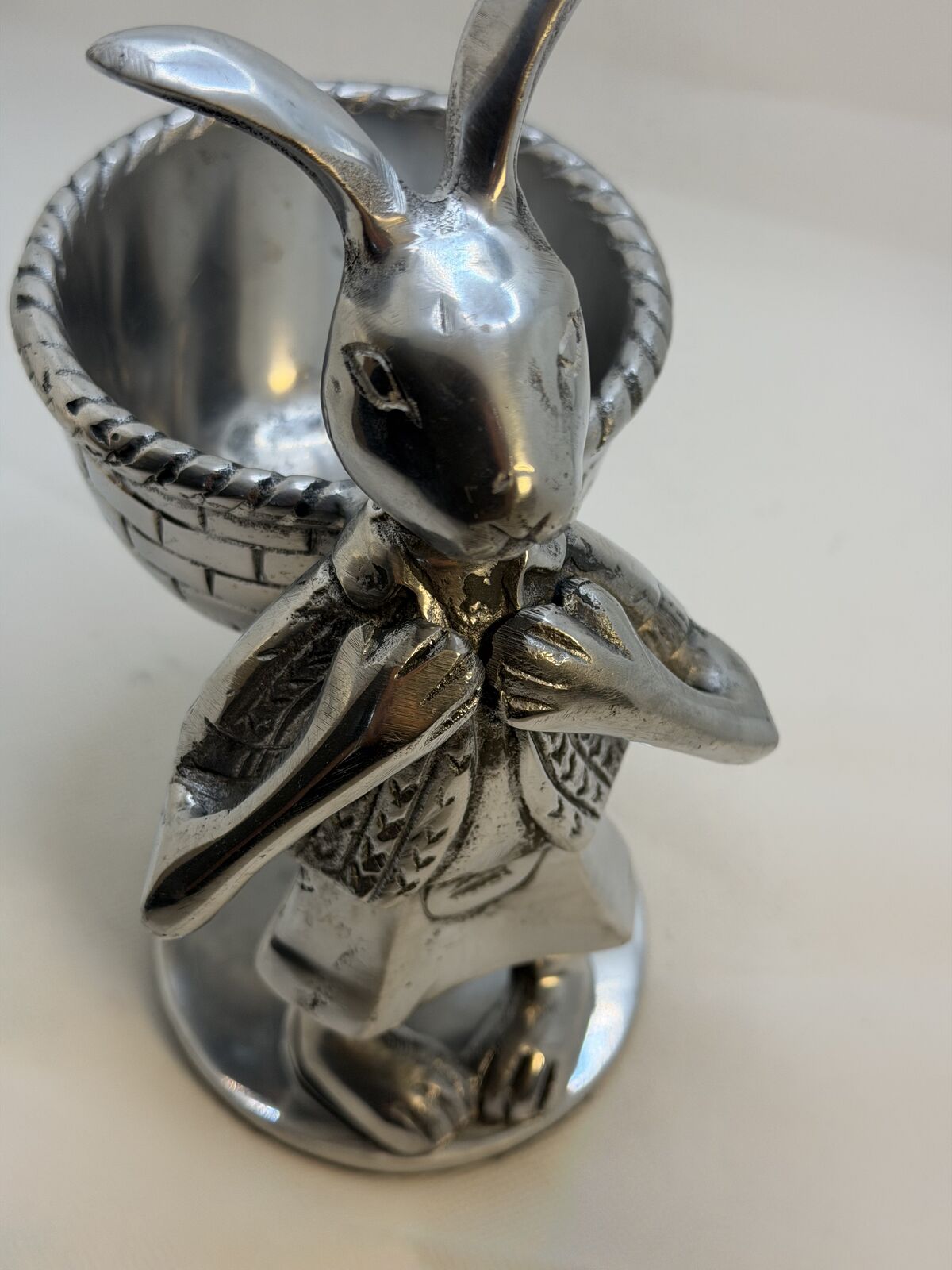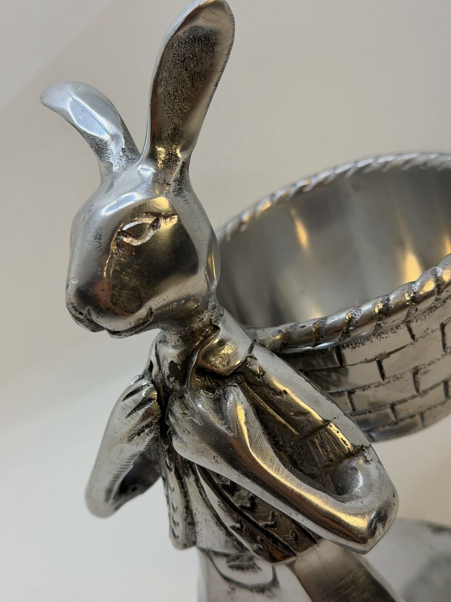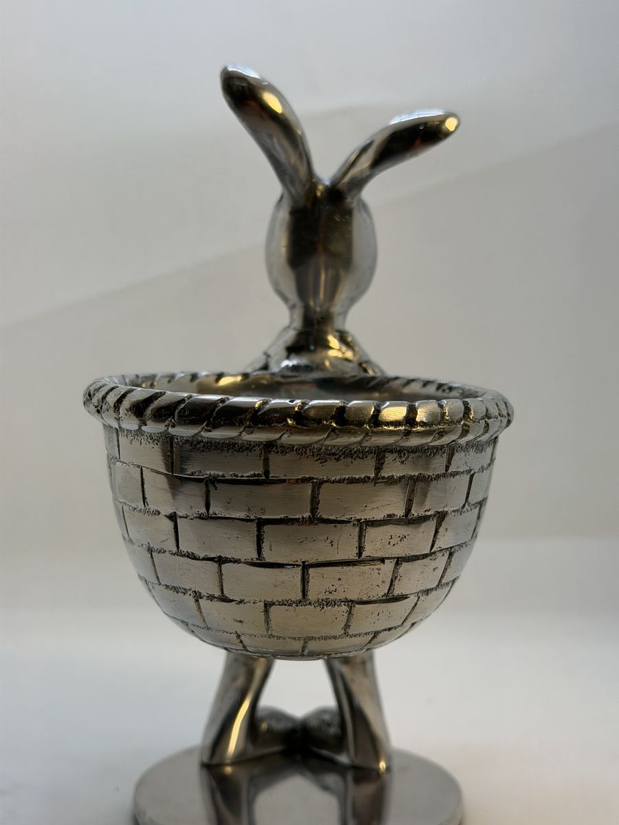 VenmoVintage collectible silver tone metal bunny. Perfect for holding candy, votive candle, jewelry etc. Unbranded 7.25 H 5.25 D 4 W