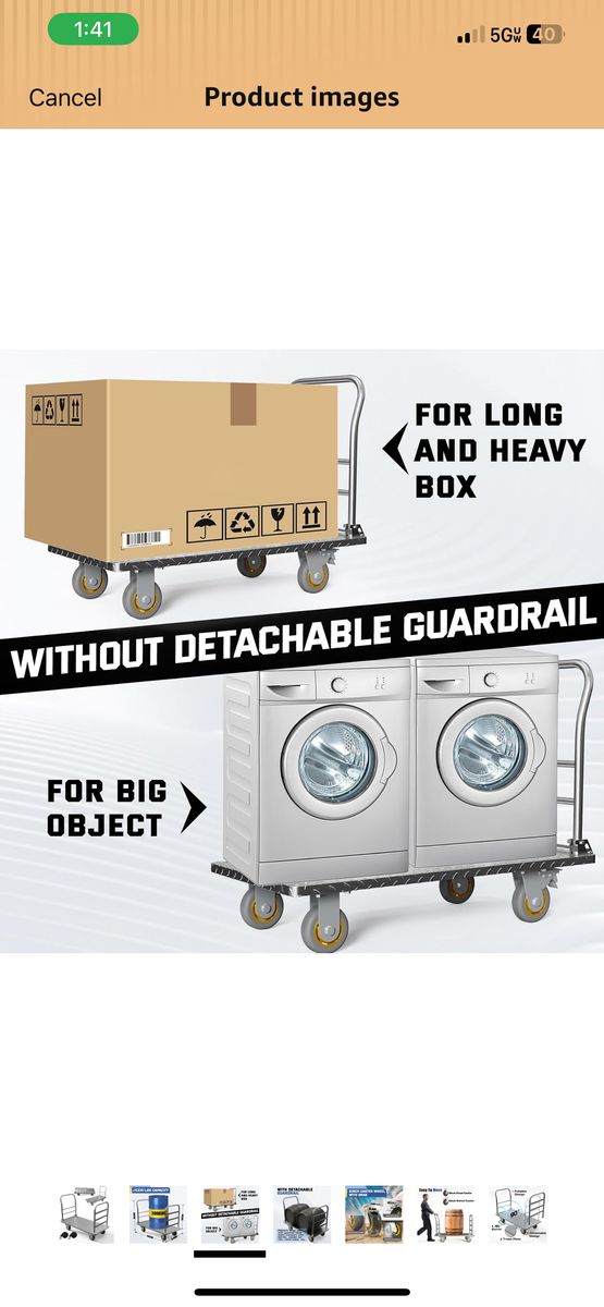 Platform Truck Cart with Detachable Baffle Guardrail,Heavy Duty 48x24 Inch Flatbed Cart with 2000 LBS Weight Capacity and 6In Swivel Caster Transporting Heavy Loads and Barrel with Ease & Efficiency
