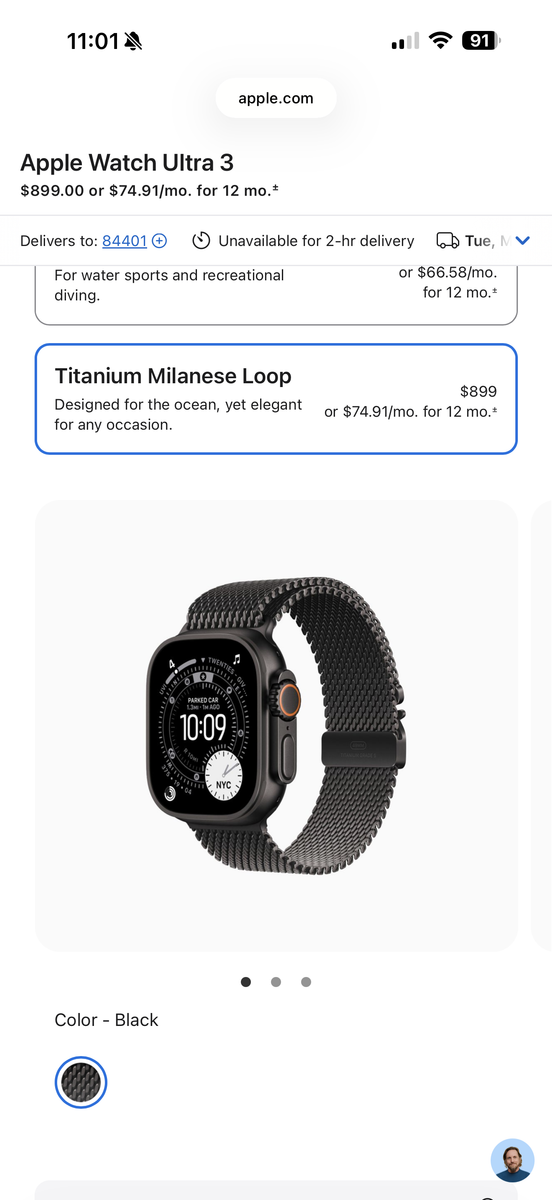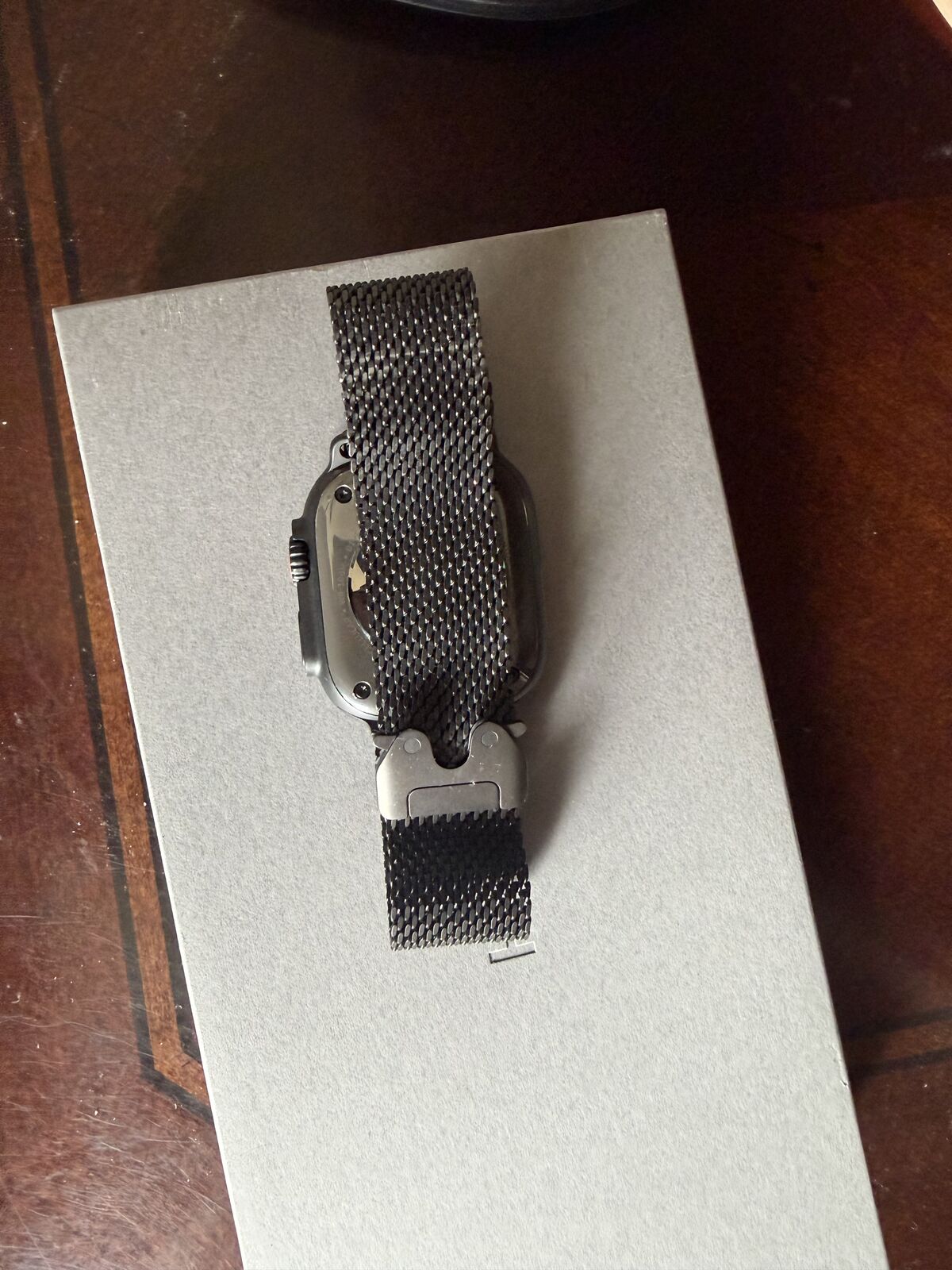 Watch could easily pass as new (100% battery capacity) and came with the Black Apple Titanium Milanese Loop, super light weight and adjustable. I have all the boxes and charger (never used).