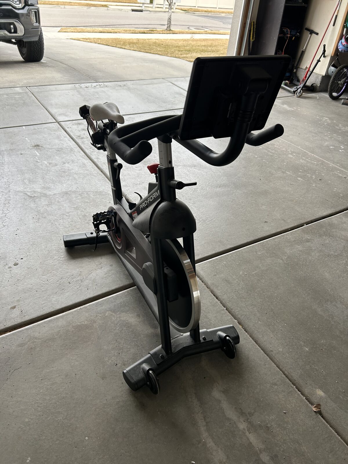 PayPalThe ProForm Carbon CX (PFEX63919) is a budget-friendly, upright indoor magnetic spin bike with 16 resistance levels, a 28-lb inertia-enhanced flywheel, and a 250-lb weight capacity. It features an LCD display, Bluetooth connectivity for iFIT, and includes two 3-lb dumbbells for upper-body training.