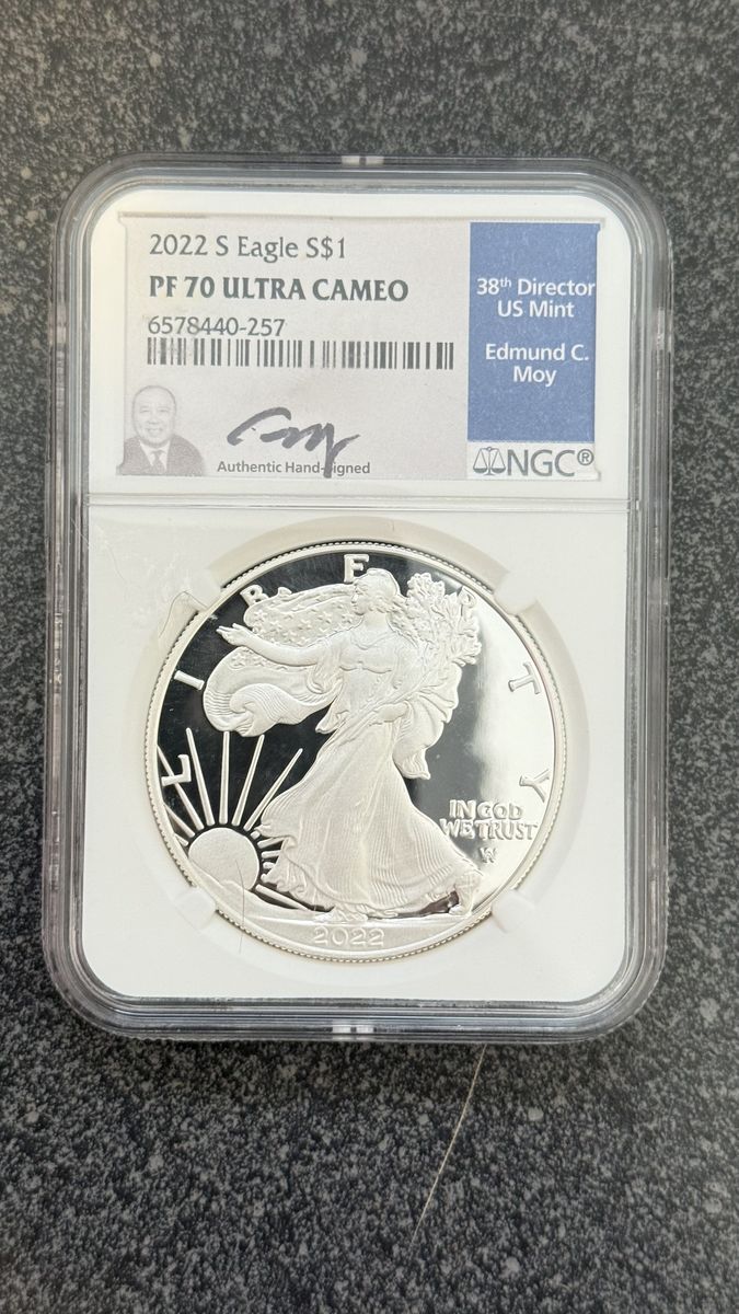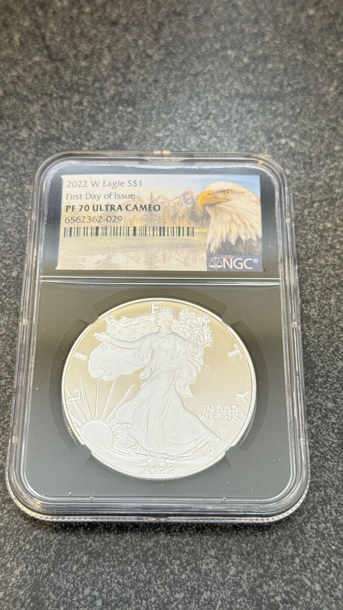 -Rosie Reloader Reverse PF 70 - $220 -2016-P First Strike MS70 Mark Twain with tone - $250 -2025 Samurai & Dragon Reverse PF 70 Antiqued - $250 -2024 S Morgan and Peace Dollar Early Release Reverse PF 69 Set - $400 -2022 W Eagle First Day Issue PF 70 Ultra Cameo - $300 -2022 S Eagle PF 70 Ultra Cameo Signed - $275 -2023 W Eagle First Day of Issue PF 70 Ultra Cameo - $275