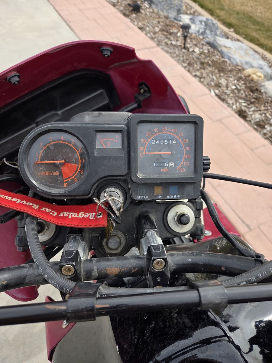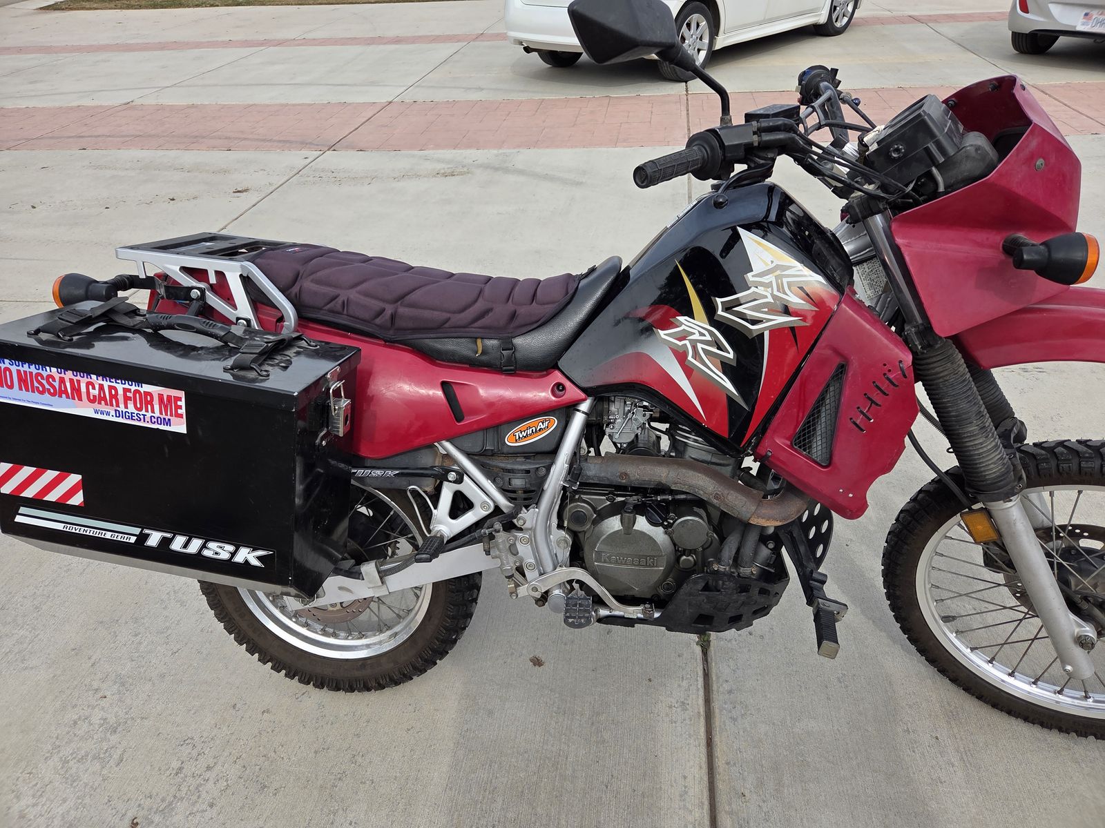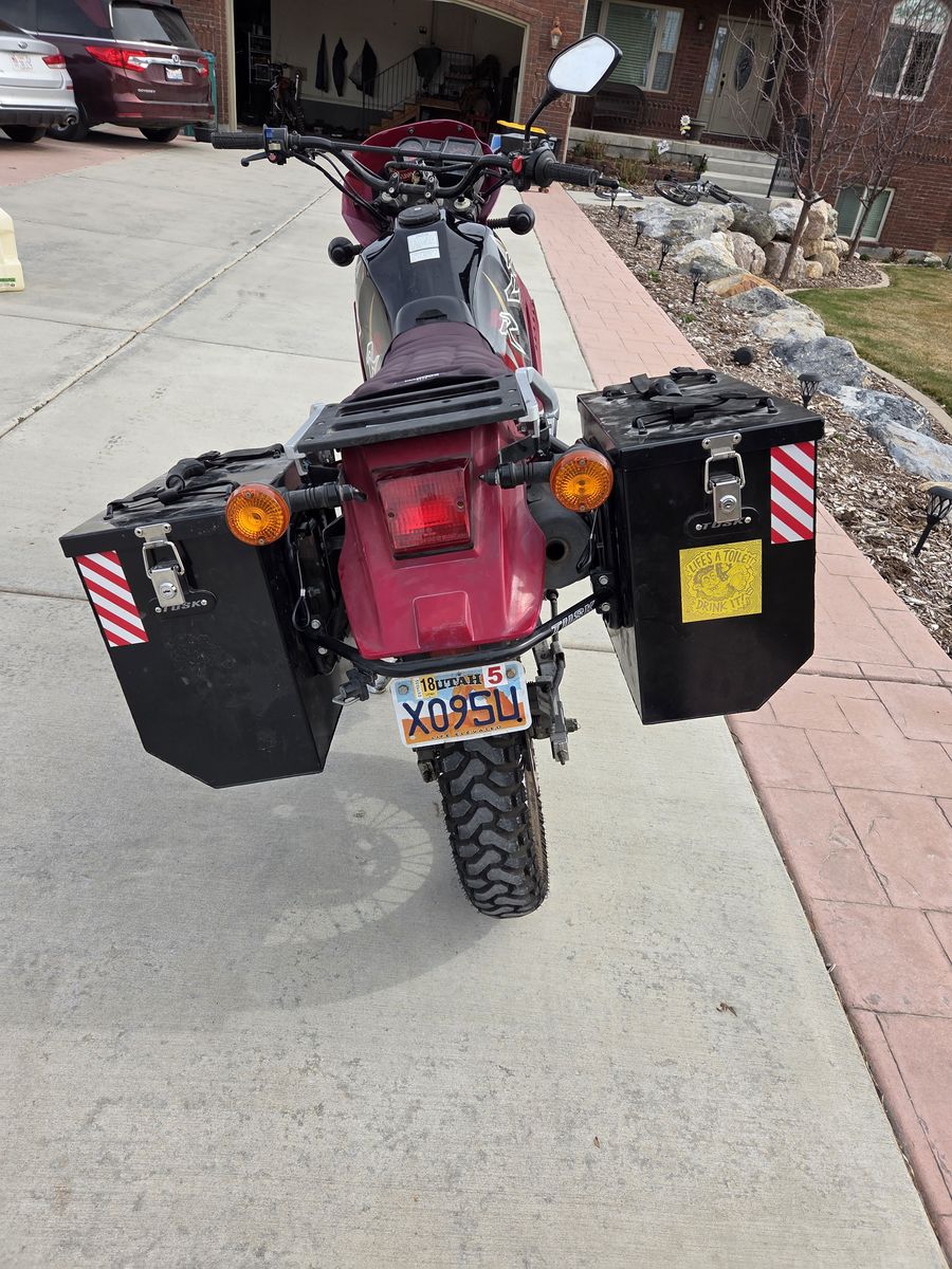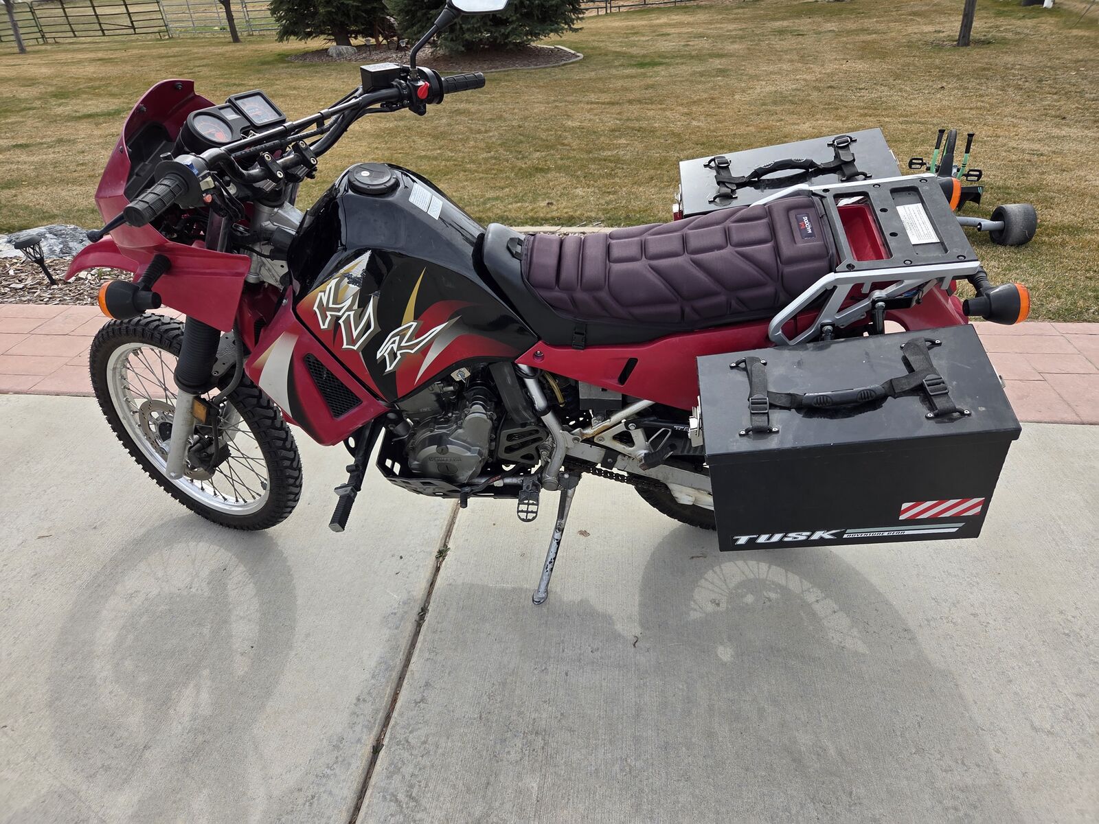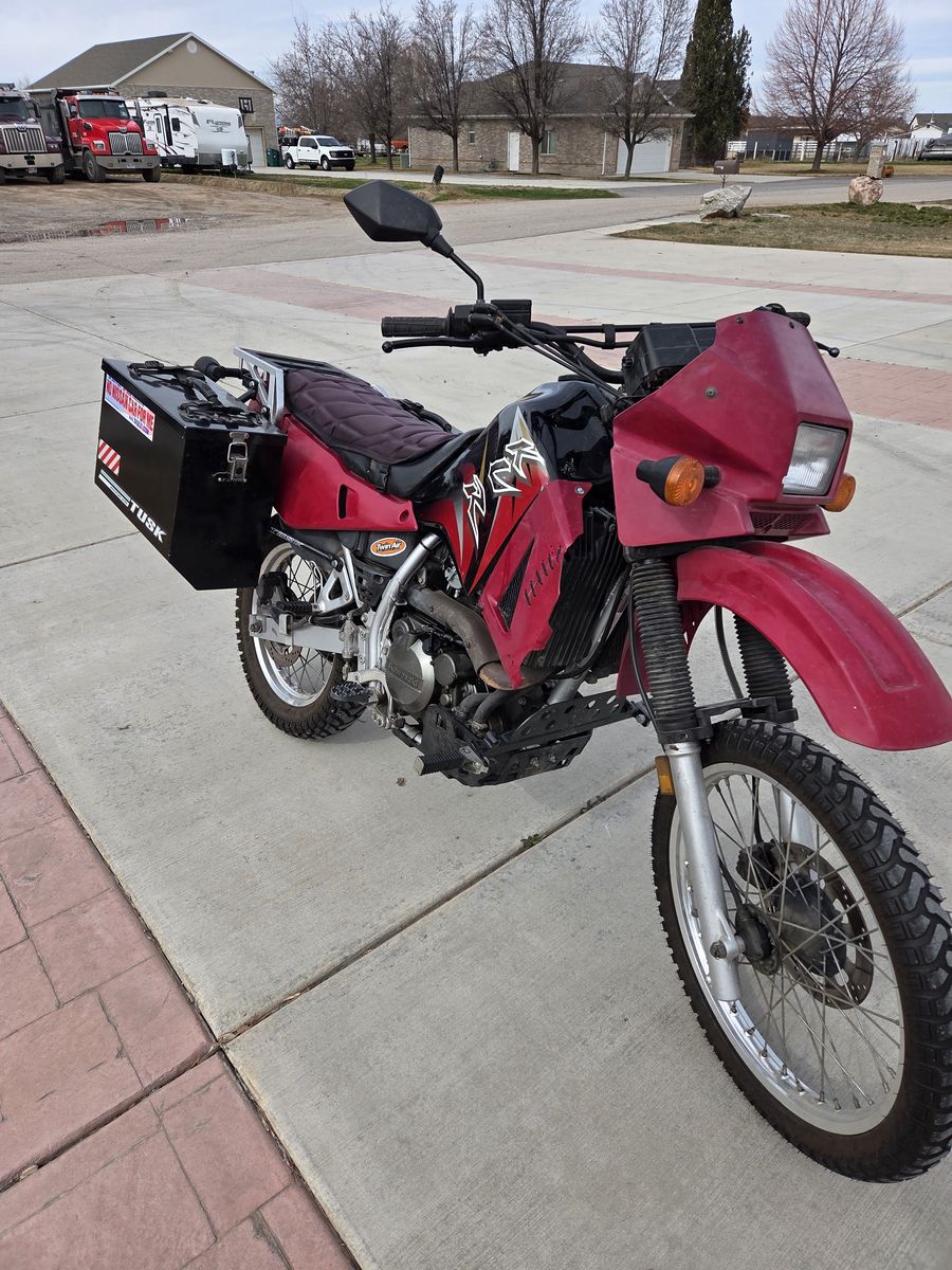 2004 KLR 650 has after mark lowering kit and saddle boxes. Has 23,000 miles but runds great.