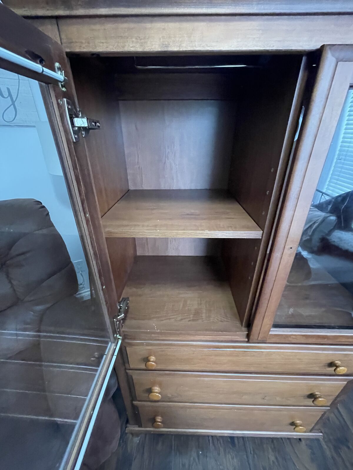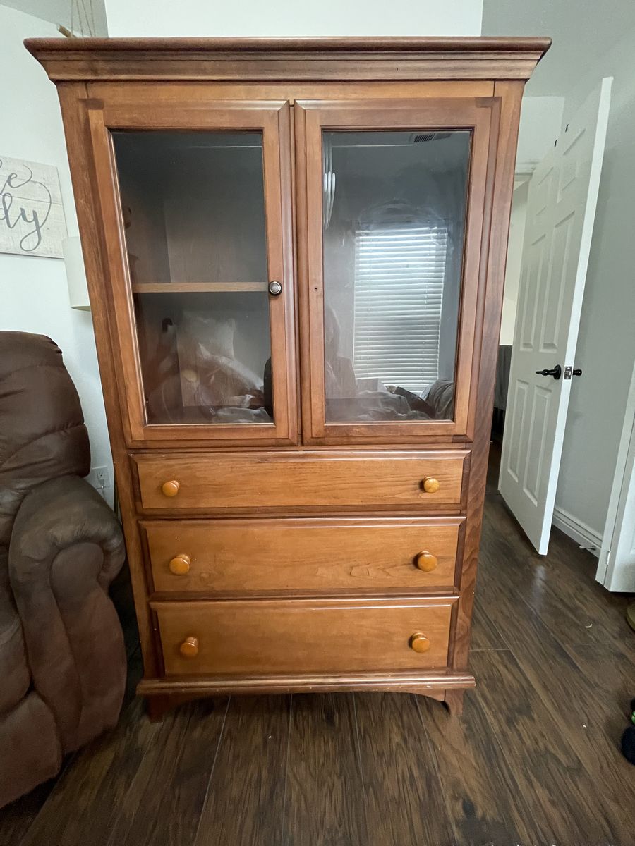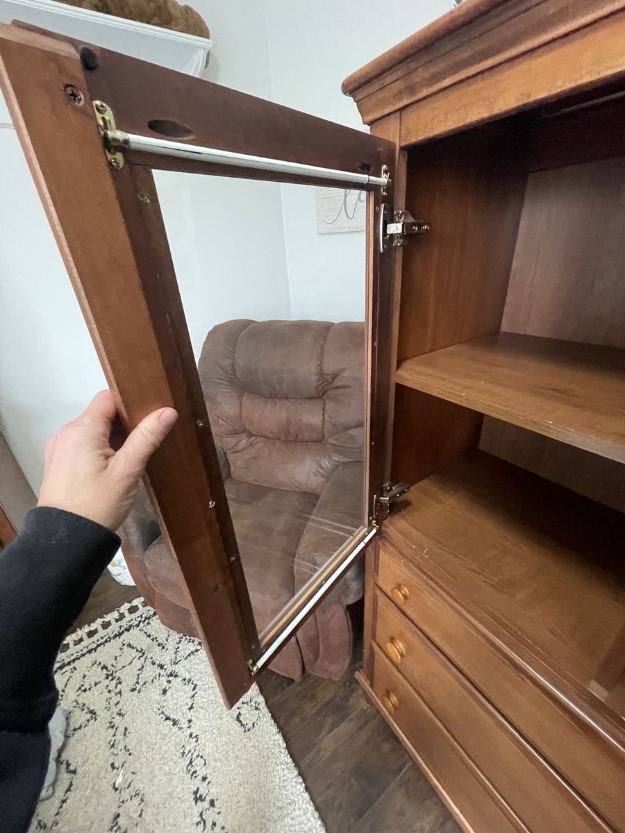 VenmoThis is a dresser tv stand with hutch that can be removed, and an armoire with drawers..?Not sure what to call these. They’re both in great condition, other than a knob missing from one of the doors. Easy fix though. Shelves are removable and can be adjusted to desired height. Glass doors have curtain rods inside. Must pick up in South Jordan. I cannot help you load them. They need to come down one flight of stairs and out the front door. Will take two people to move. $175 OBO for the set