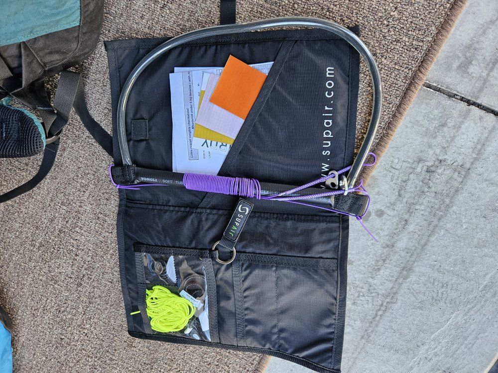 This comes with Supair zip bag, Compac Case / for hike and Fly and Supair backpack. and repair kit.