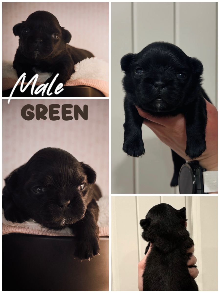 • Green Male – Black, Fluffy Carrier: $2,200 -SOLD-