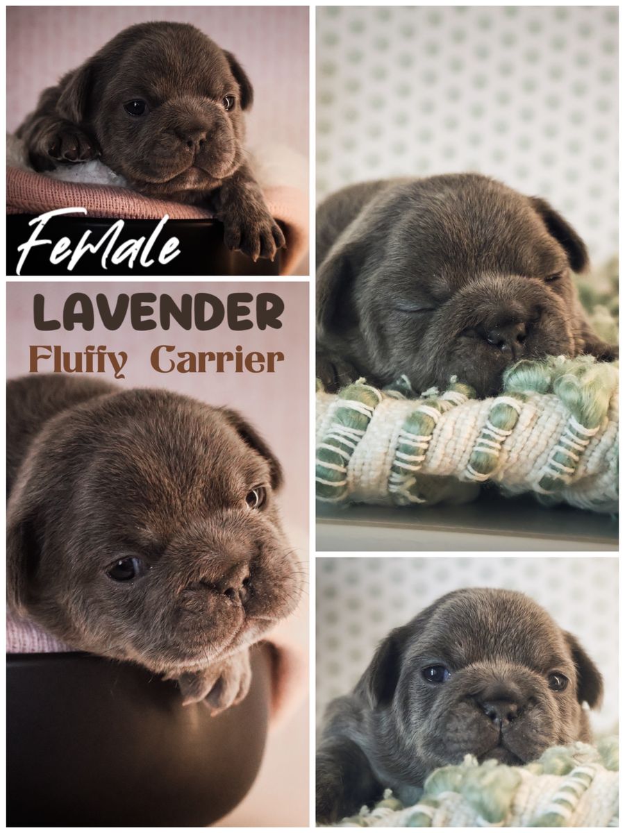 • Lavender Female – Blue, subtle merle Fluffy Carrier: $2,500
