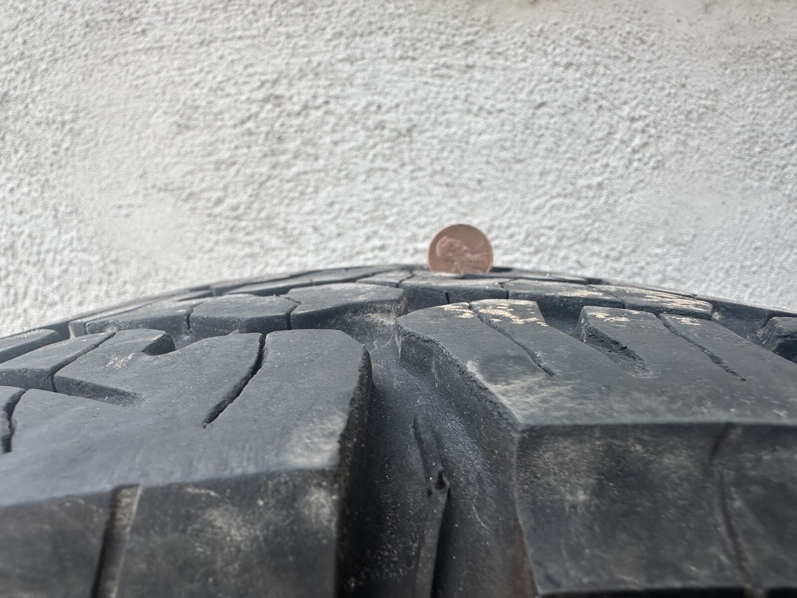 Two tires measure 8/32 and two tires measure 7/32” No plugs, patches, or sidewall damage. Very even wear.
