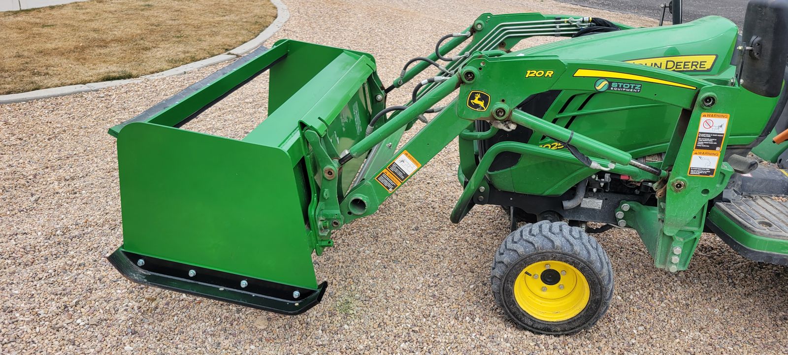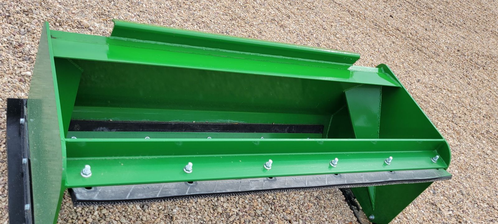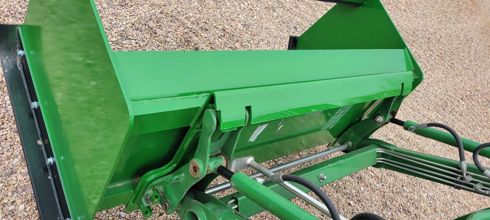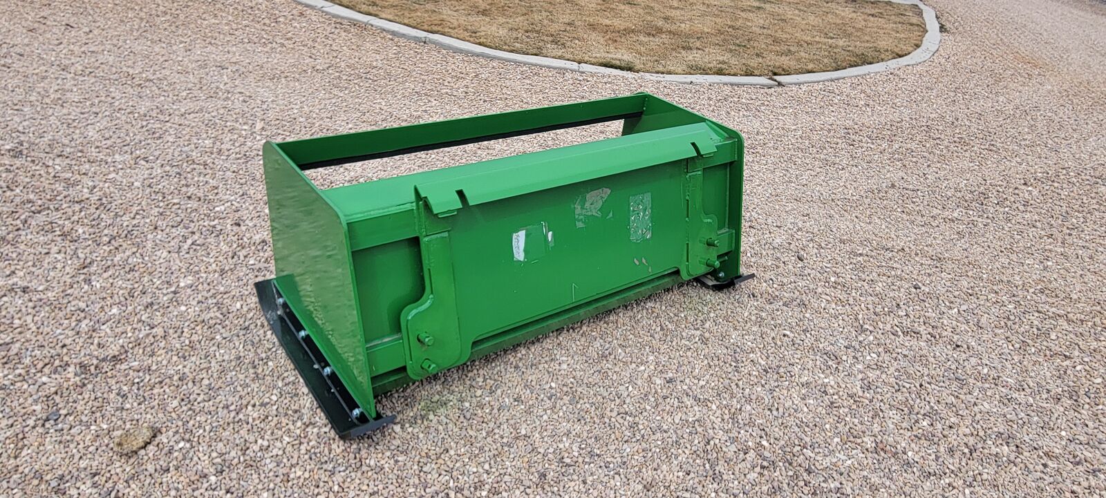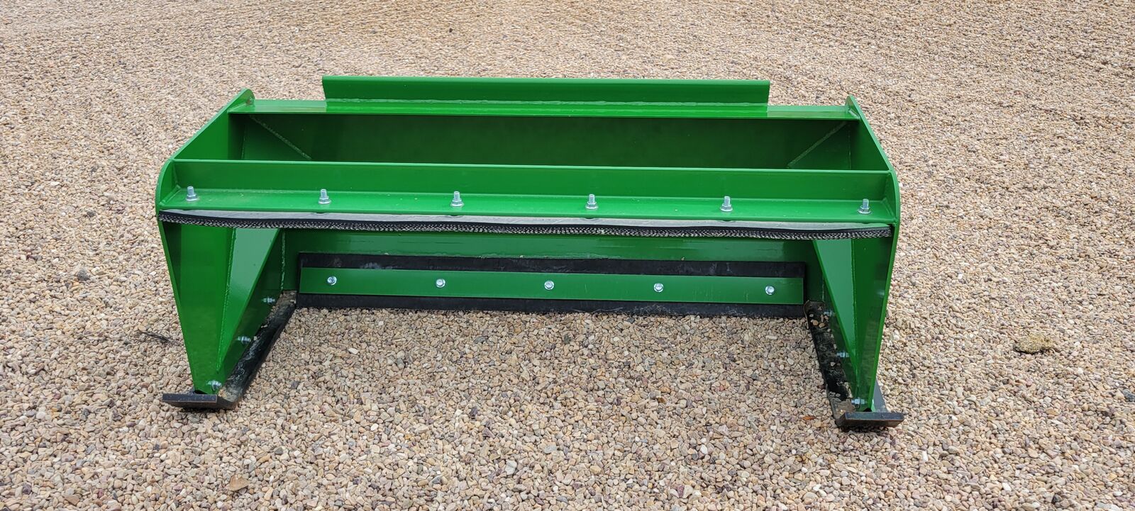 72" Snow pusher with John Deere 1025R mounts. Shoes in good condition. Back drag rubber new. Could be modified for Skid Steer with weld or adapter plate attachment.