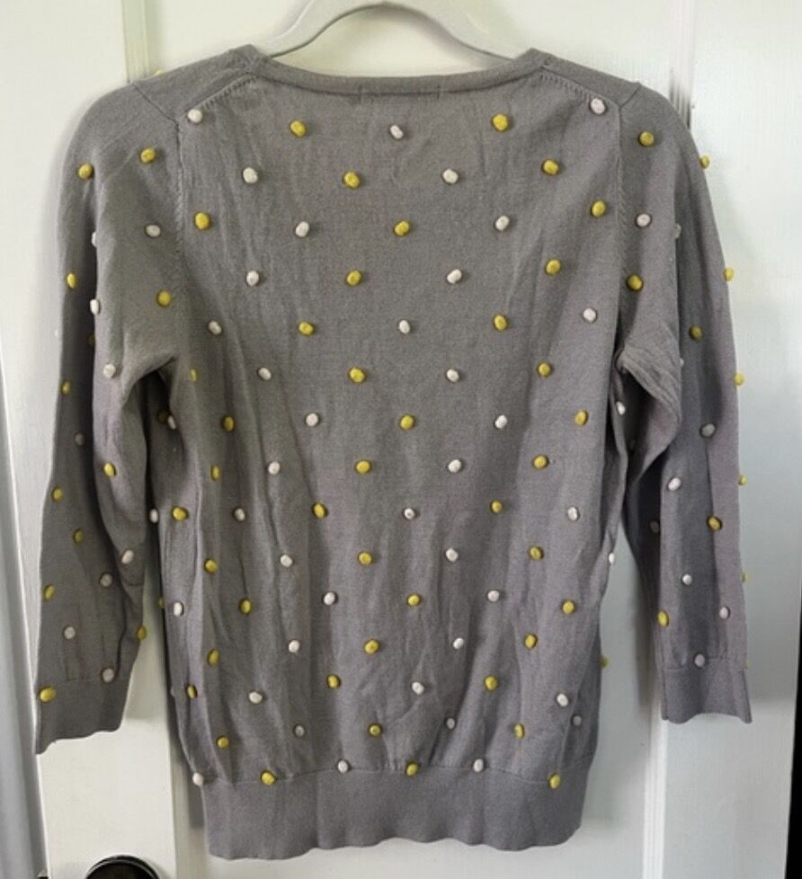 Excellent condition Boden women’s sweater with Pom Pom balls size 6. I got it and then realized it had wool in it and I’m allergic to wool.