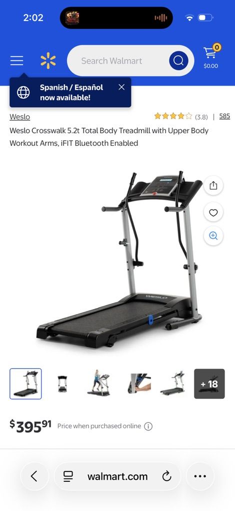 VenmoWeslo crosswalk 5.2t treadmill great condition, clean, compact, lightweight, but still very sturdy and durable. I’m selling this because I have two others and don’t need to keep a third one. Speed up to 10 mph does not have incline but has handles to give you resistance for your arms to get a good full body workout. $125.00 obo.