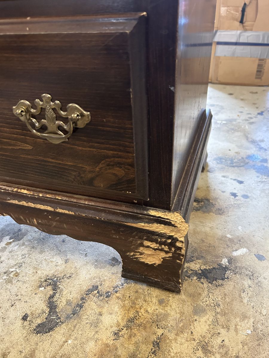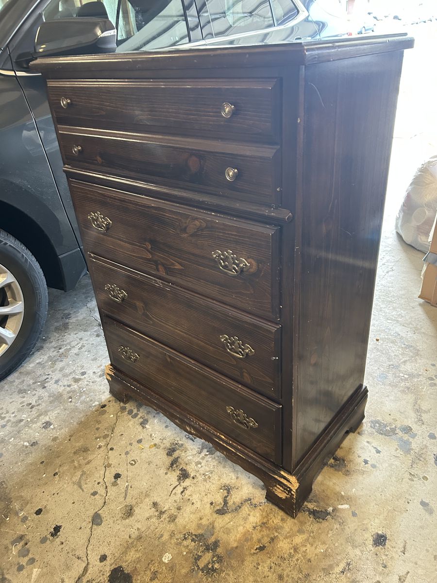 VenmoBassett 4 drawer dresser. Very solid but does need some touch up on the bottom. 45 inches high 18 inch depth 32 inch width