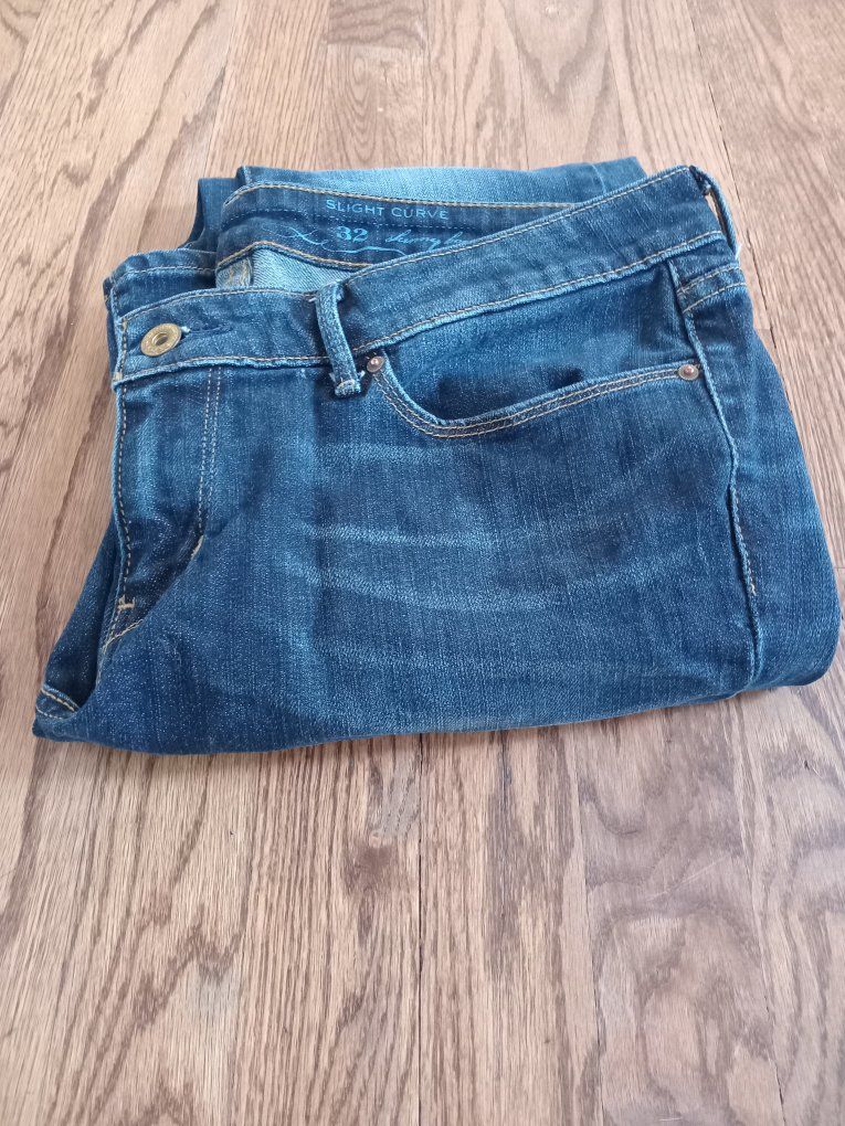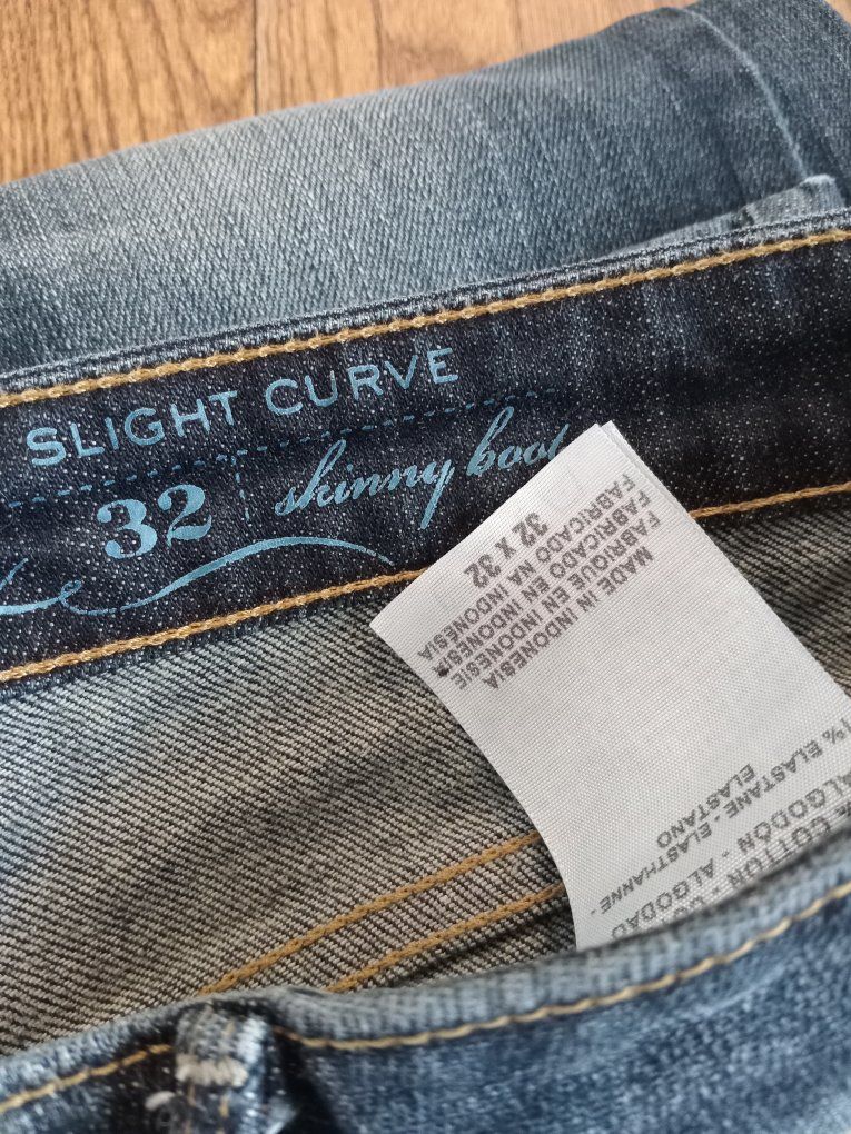 Lightly distressed, slight curve, skinny boot jeans.