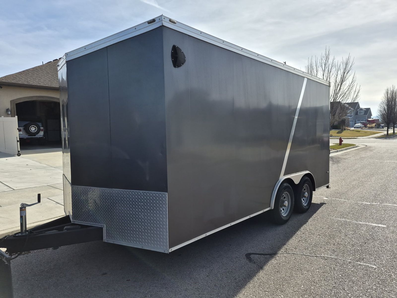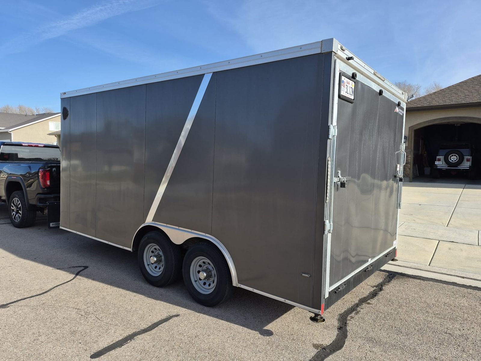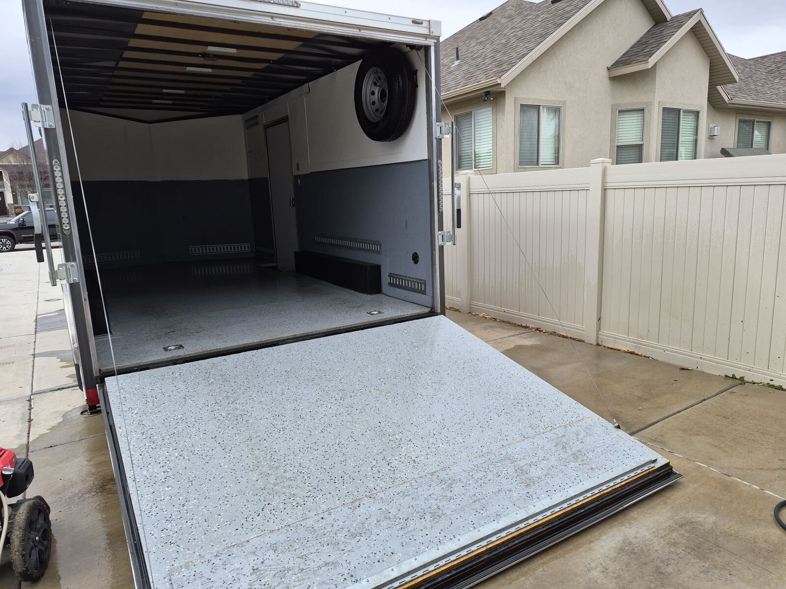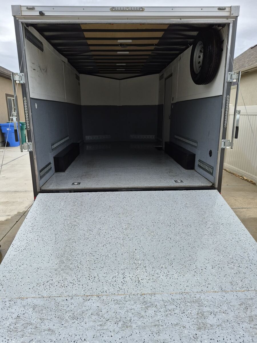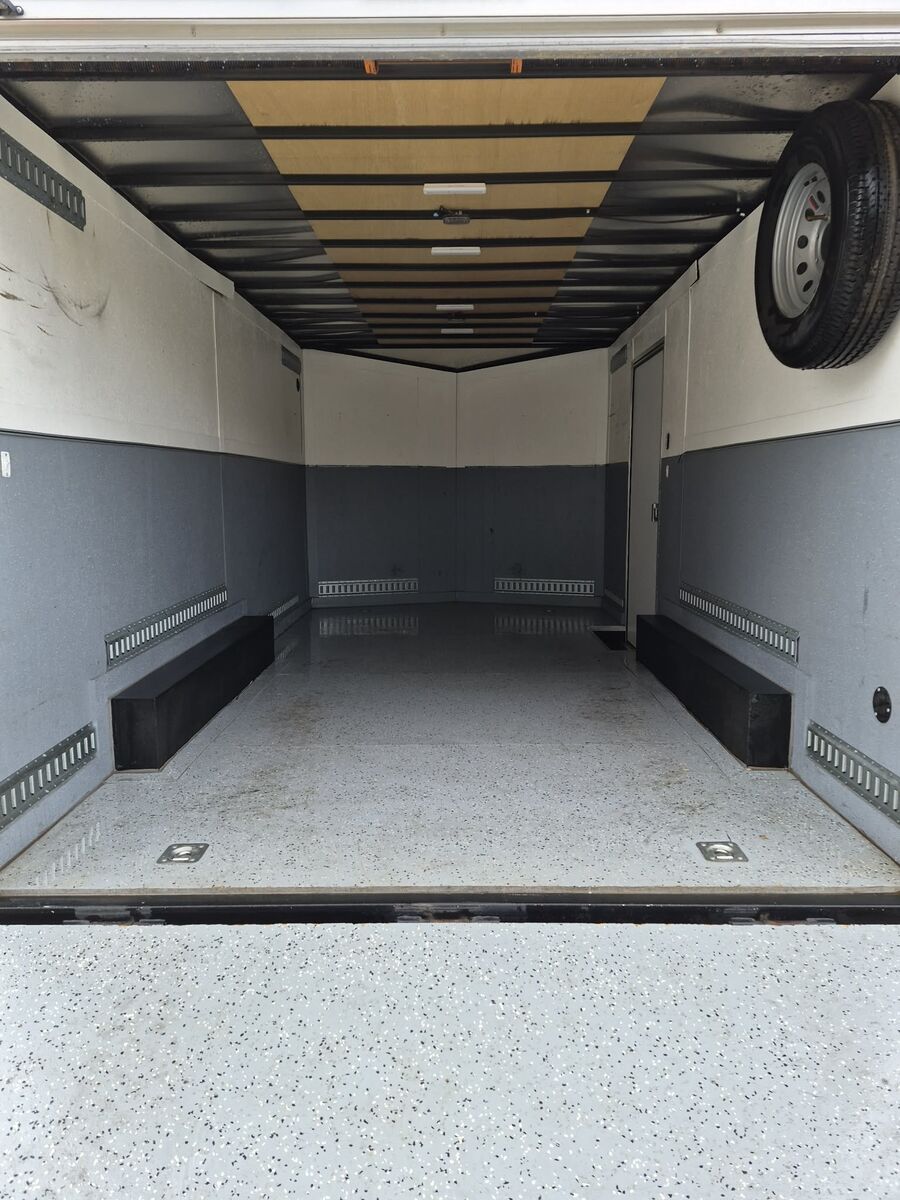 Venmo8.5ft x 16ft 5000 lb axles 9900 lb GVWR Brand new tires with less than 100 miles on them. Epoxy floors Painted interior Floor D rings plus E- track throughout. New spare tire included. A few rock dings but in very good condition. Tow's perfect and true. $9000 obo