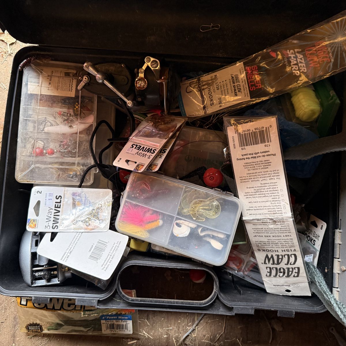 Three large tacklebox full of all kinds of gear from professional to amateur fishing that these boxes are a must have if you’re a fisherman and appreciate nostalgic collection of fishing equipment this is a must have collection and the fish never got away! Will trade for silver !!!!!