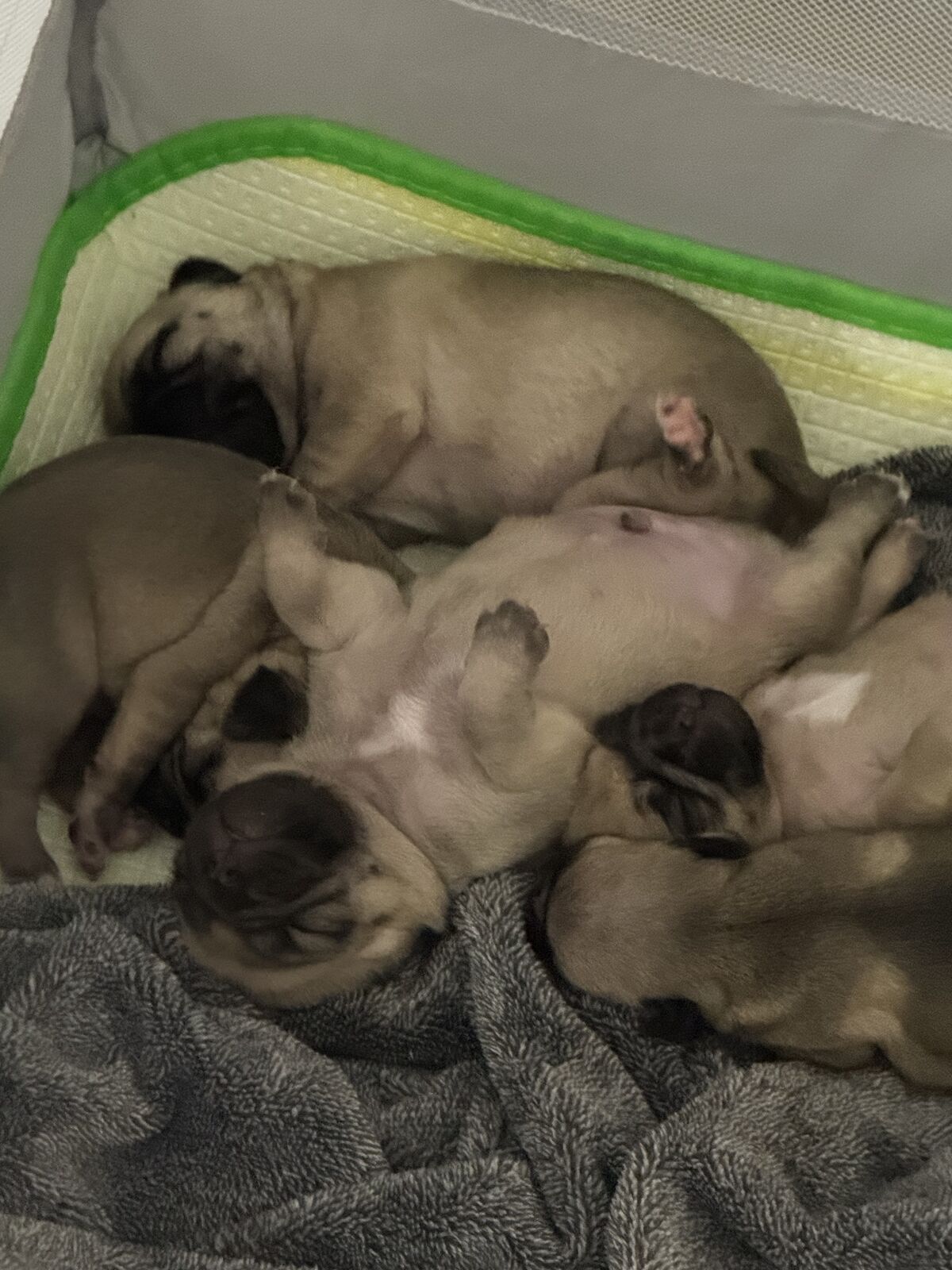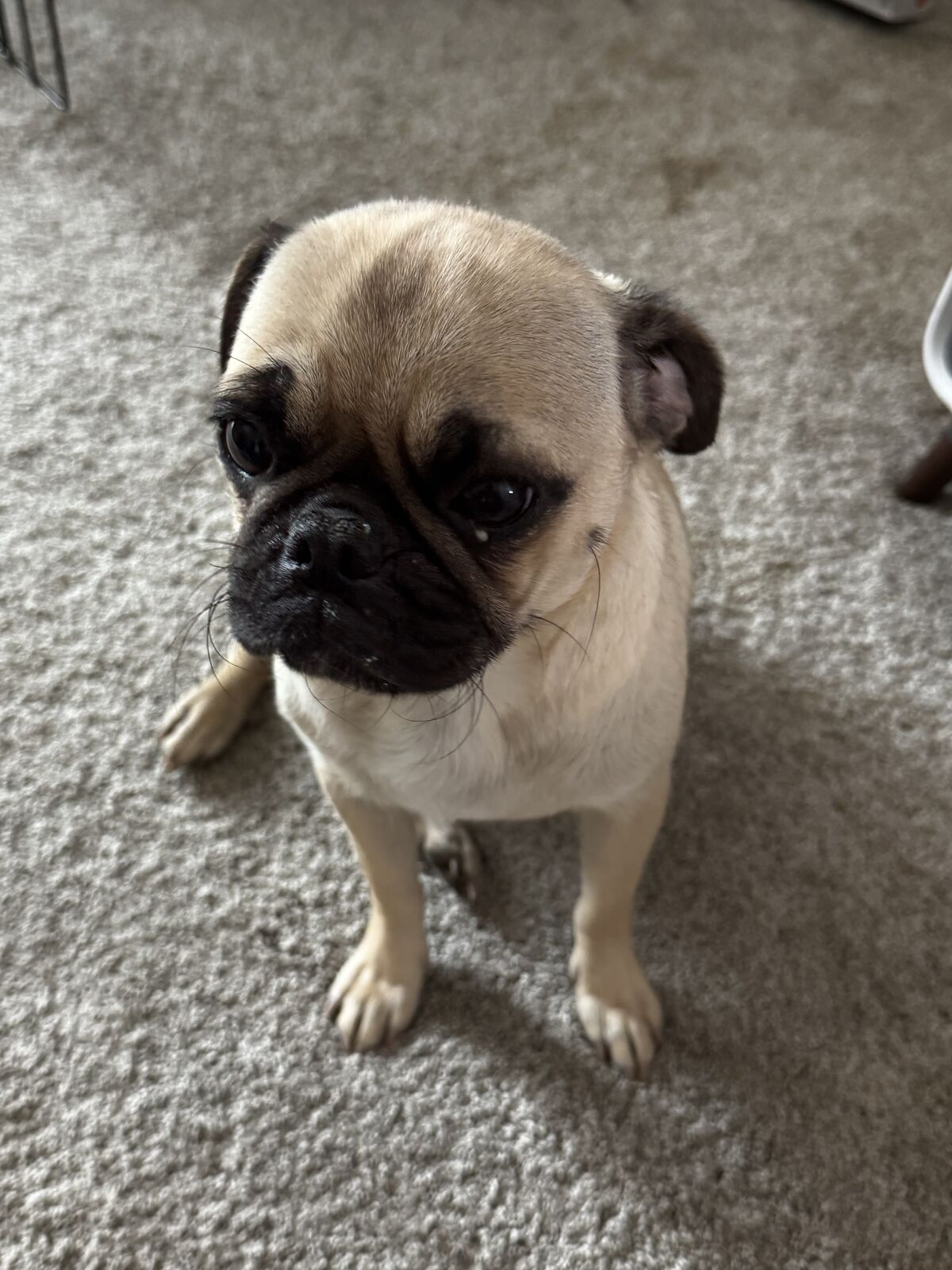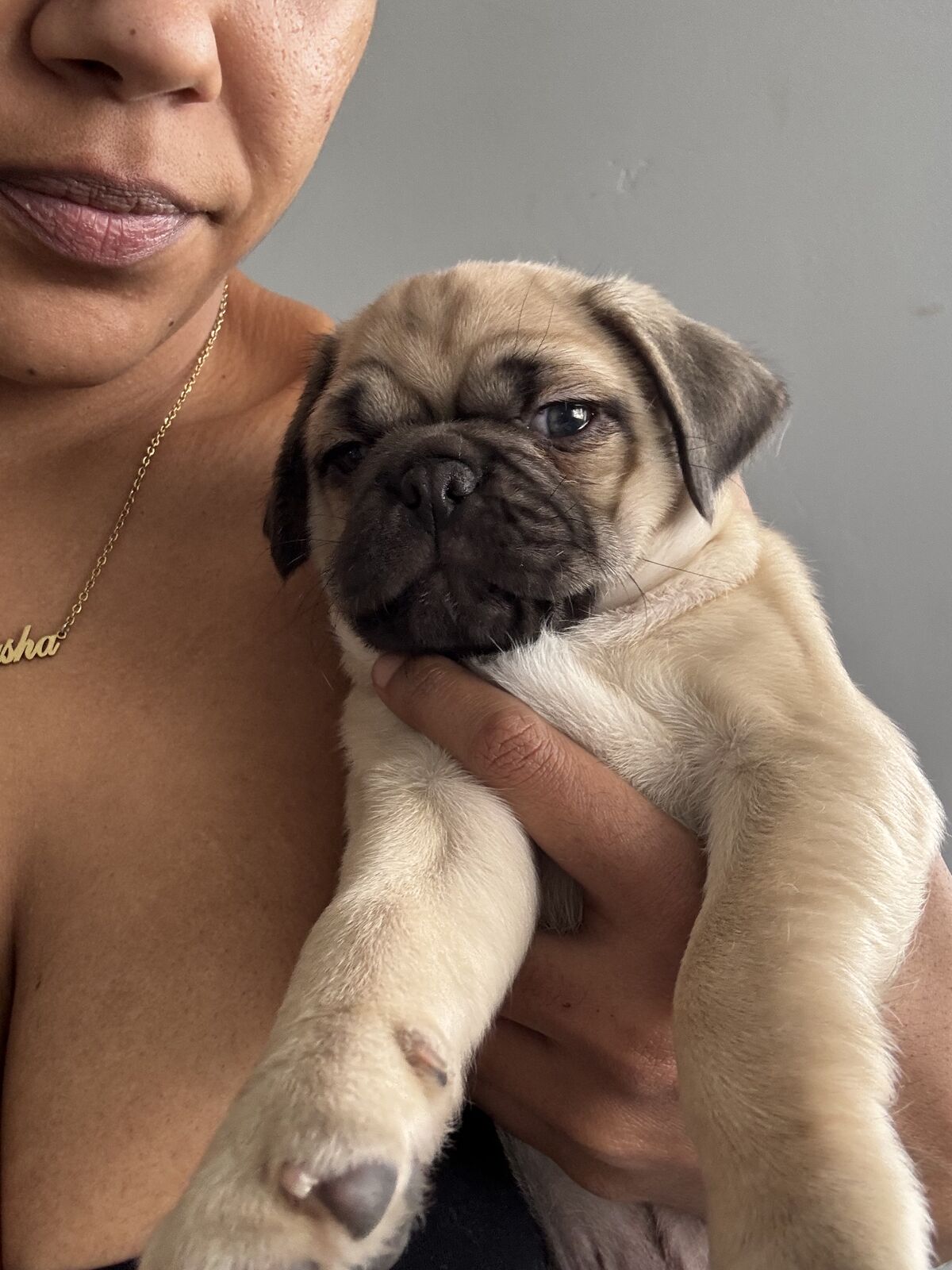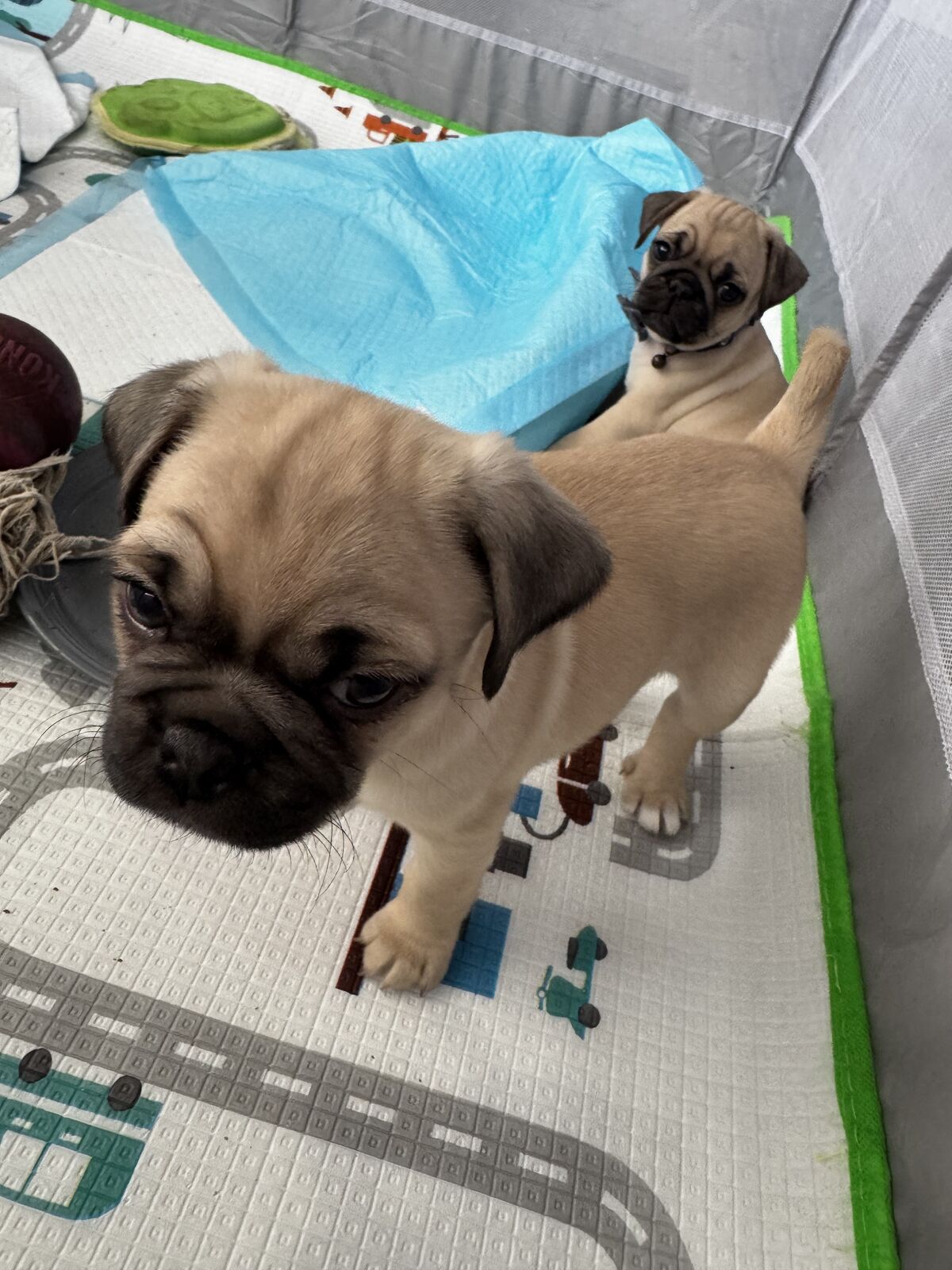 Porkchop is a 7-week-old Pug puppy, born on January 12th, and he is full of energy, personality, and cuddles. He loves to play, explore, and then curl up right next to you for snuggles.