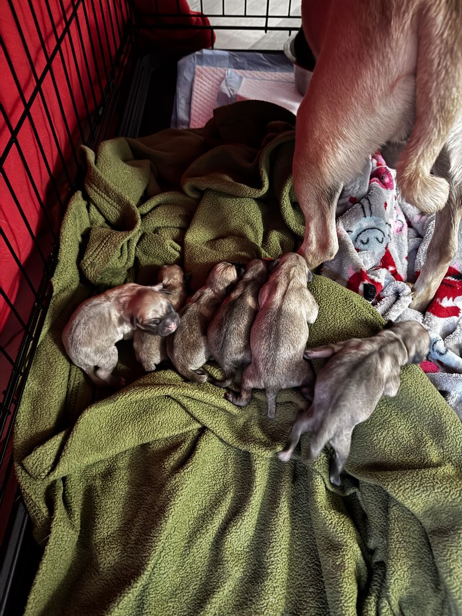 This was the first and last litter for Ms. Phoebe and Frank (mom and dad), and Porkchop is the last puppy available. He’s been well loved and is ready for his forever home! I do not support breeding, I will screen potential adopters to make sure he is going into a loving home.