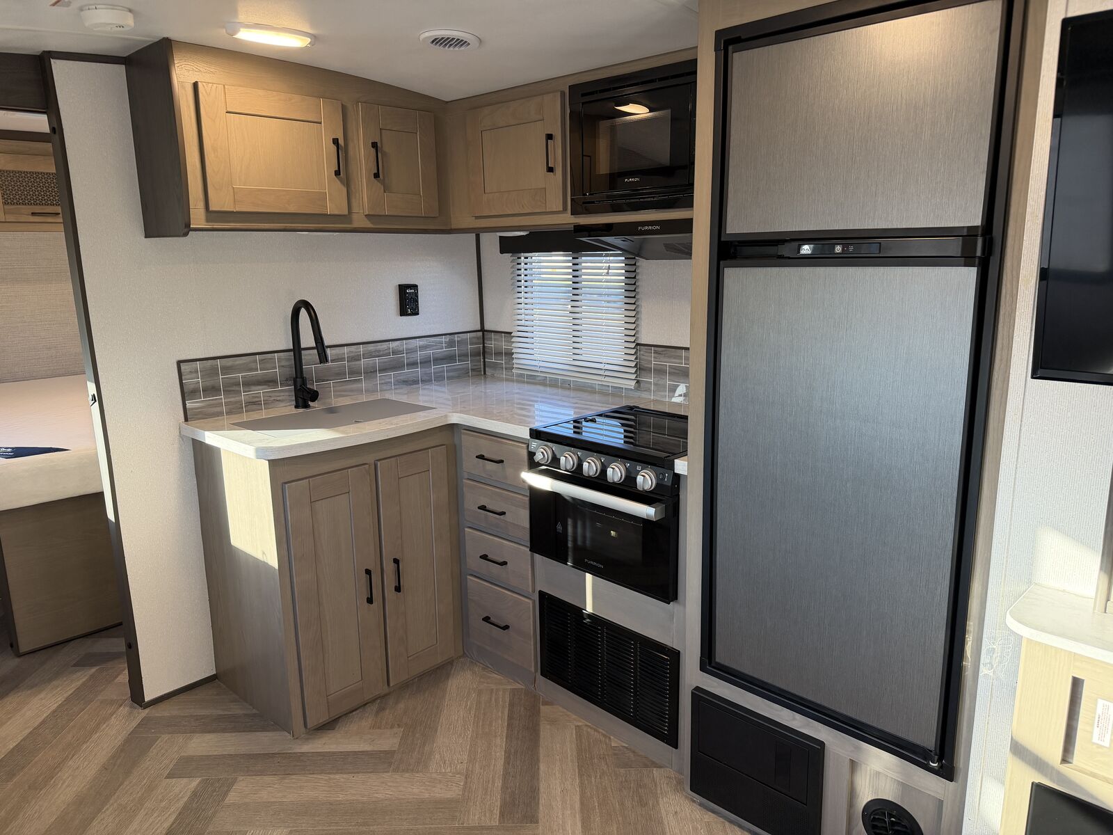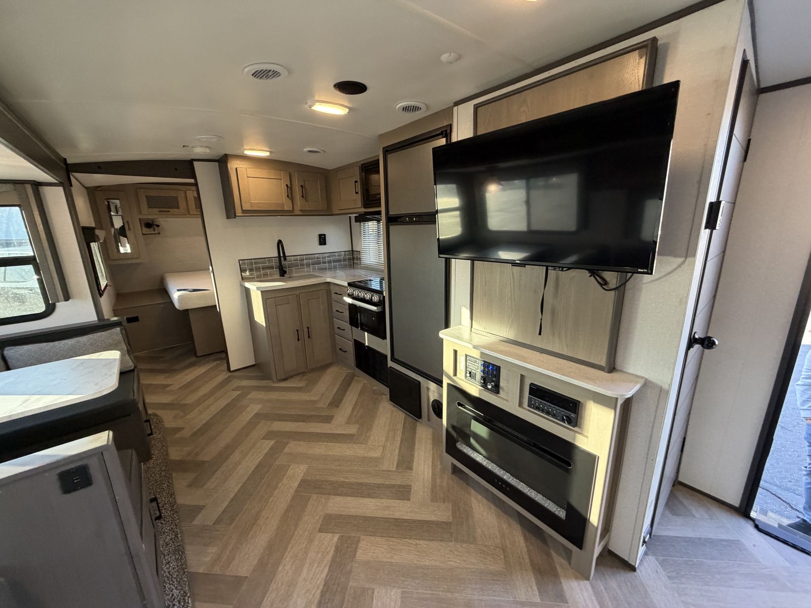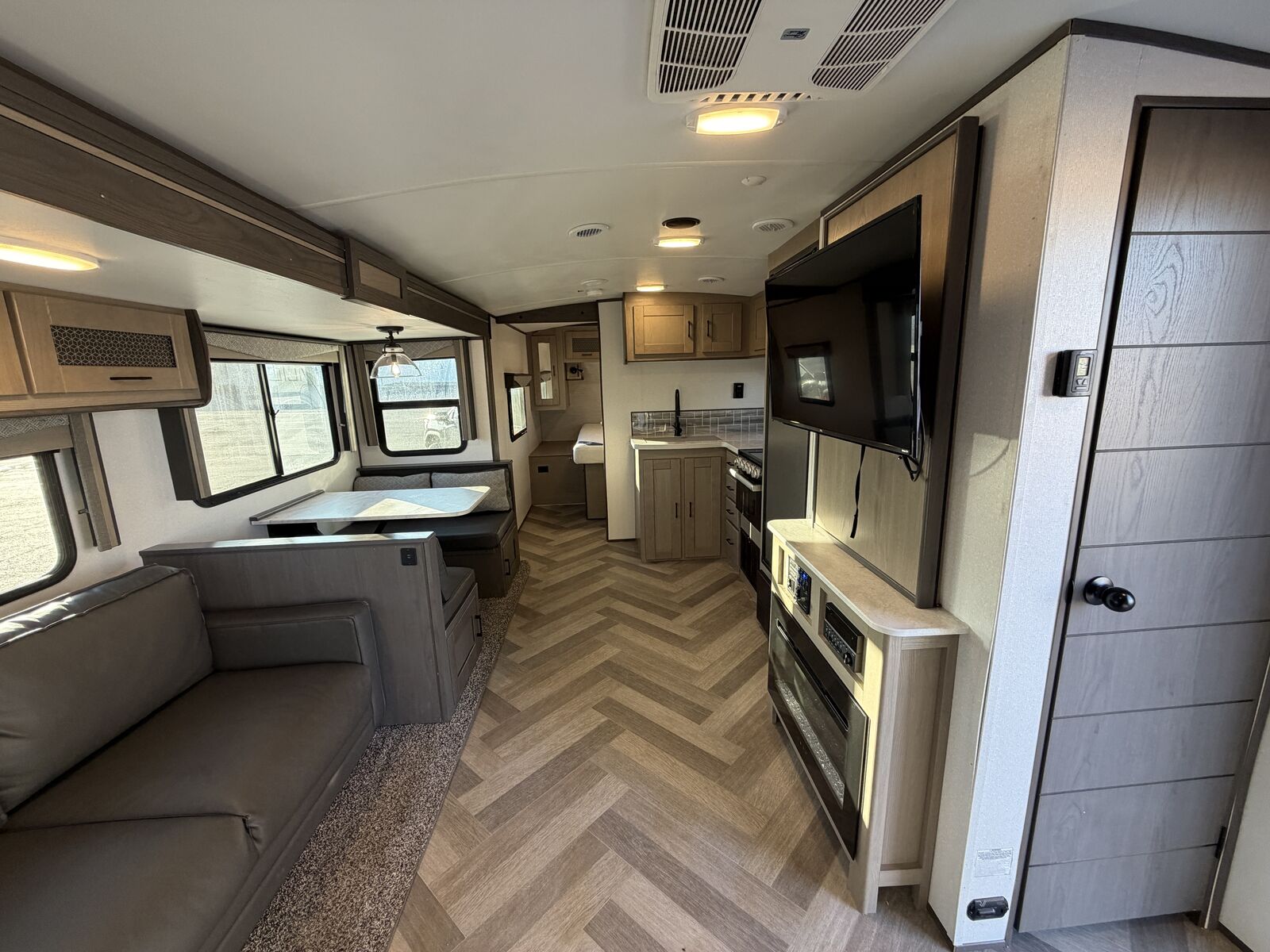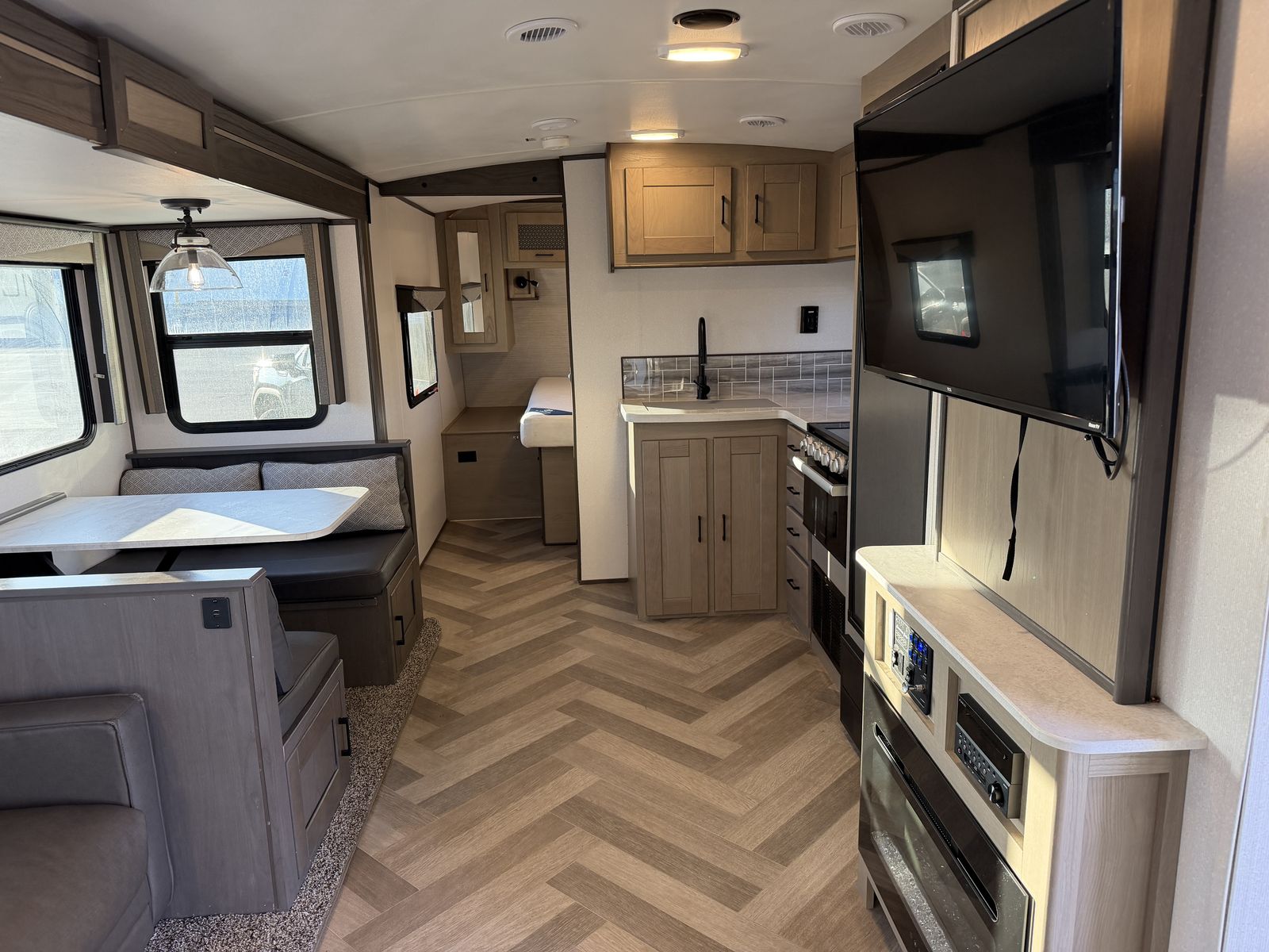 Highlights: • Private front queen bedroom • Double-over double rear bunk beds – perfect for kids/guests • Large slide-out for extra living space • Dinette & sofa convert to beds • Full kitchen: fridge, microwave, 3-burner stove & oven • Full bathroom with shower, sink & toilet • Power awning with LED lighting • A/C & furnace • Tons of interior & exterior storage