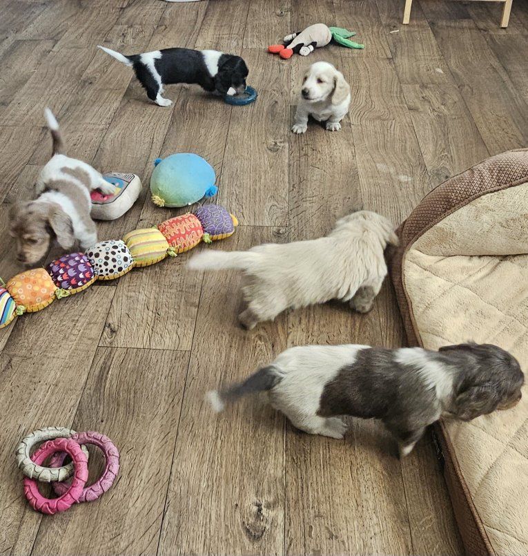 ZelleThis Adorable Boy will be ready for his new home this Saturday April 4th!!He will be Long-haired! His Mother and Grandmother have been solid 4-H Dogs!! The "mother" of this litter has an absolutely Outstanding temperment! At the age of 2-years I let a young boy neither of us knew before, use her to train for a 4-H Dog, and he won everything with her at our County Fair! She is the calmest and good-natured Dog ever! Dad is a good boy and sweet too! The "Grandmother" of pups is also a GrandChampion 4-H Dog! I attached some pics of her also! This price is for "pet-only" and Full AKC Registration is available for more to an approved Breeder. I have been breeding mini Dachshunds for 26-Years now and I have Numerous References available Nation-Wide! I do feed a high Quality diet of "human-grade" meats, veggies, & Supplements to my Adult Dogs for optimum growth & development! We are located in the Twin Falls area of Idaho, 3-hours from Salt Lake City. Please check out our facebook page of 13-years now for tons of pics & videos of our Dogs! We are always concerned about "where" our pups will be going to, just as you should be concerned about "where" they are coming from! Please call for more info...Thank You!
