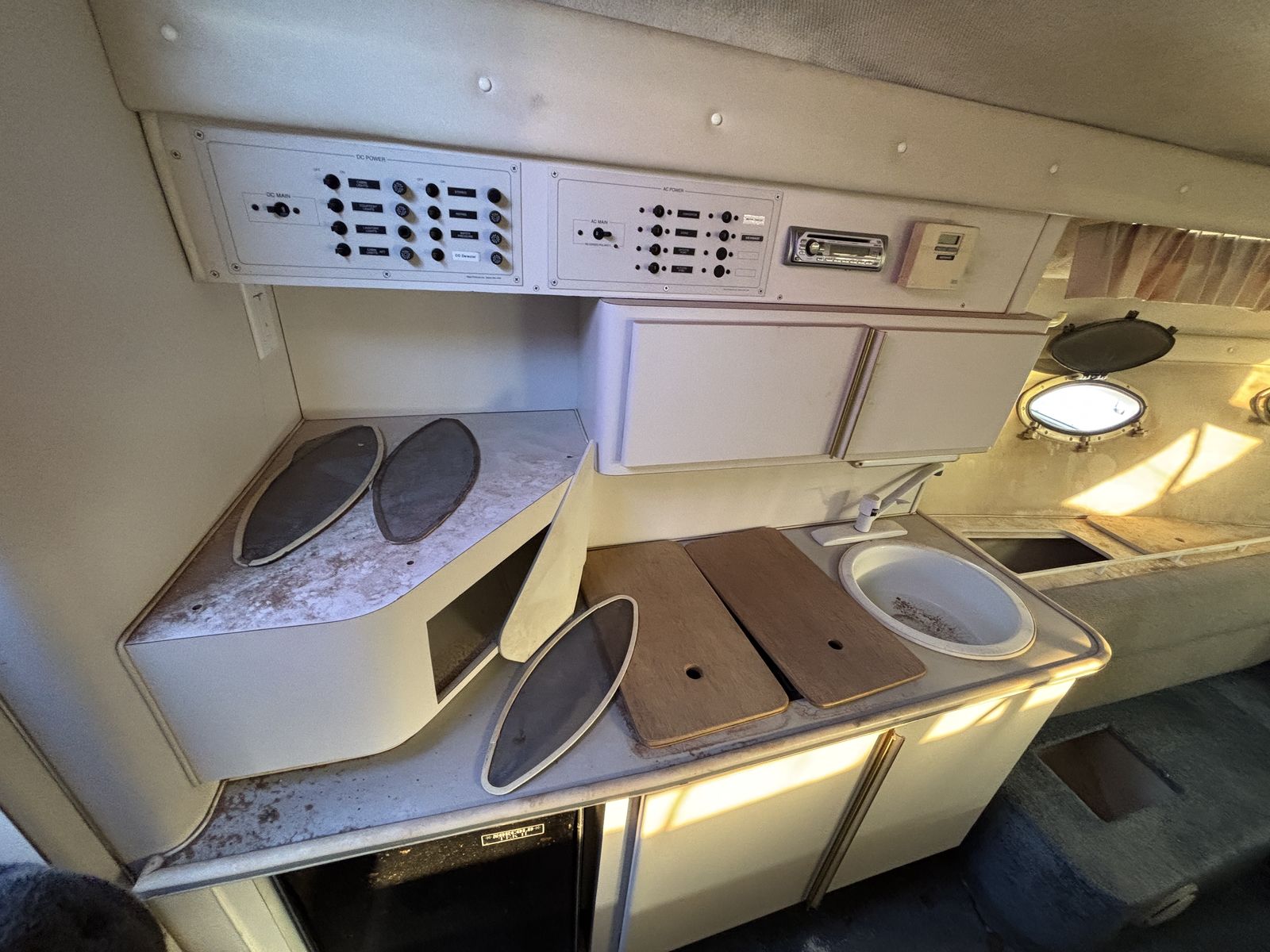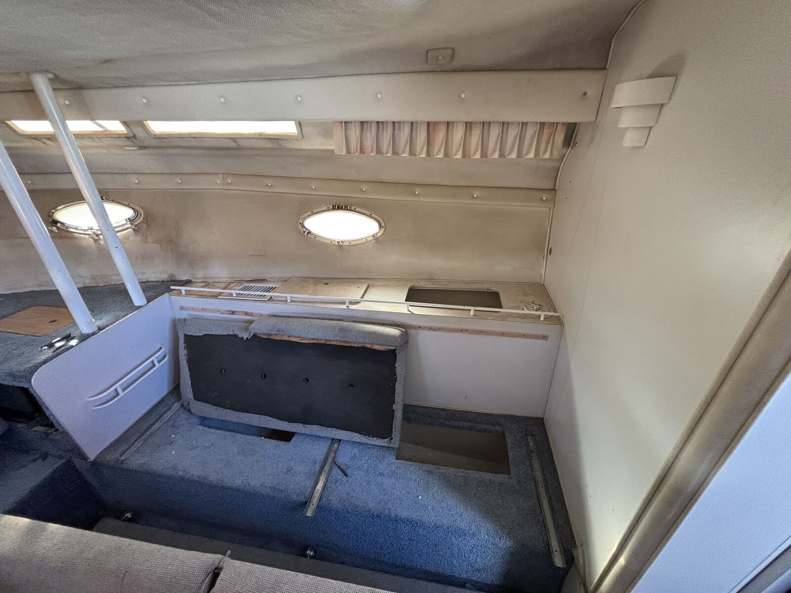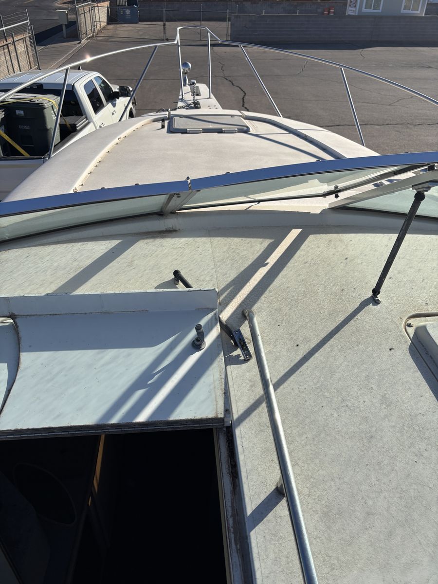 ApplePayThis is a 34 foot project boat. It needs a full remodel and a new engine. The hull fiberglass is good. The trailer is in good shape, still strong and sturdy with new tires. Title in hand. Make an offer, we will trade as well. We need it gone from where it’s at.