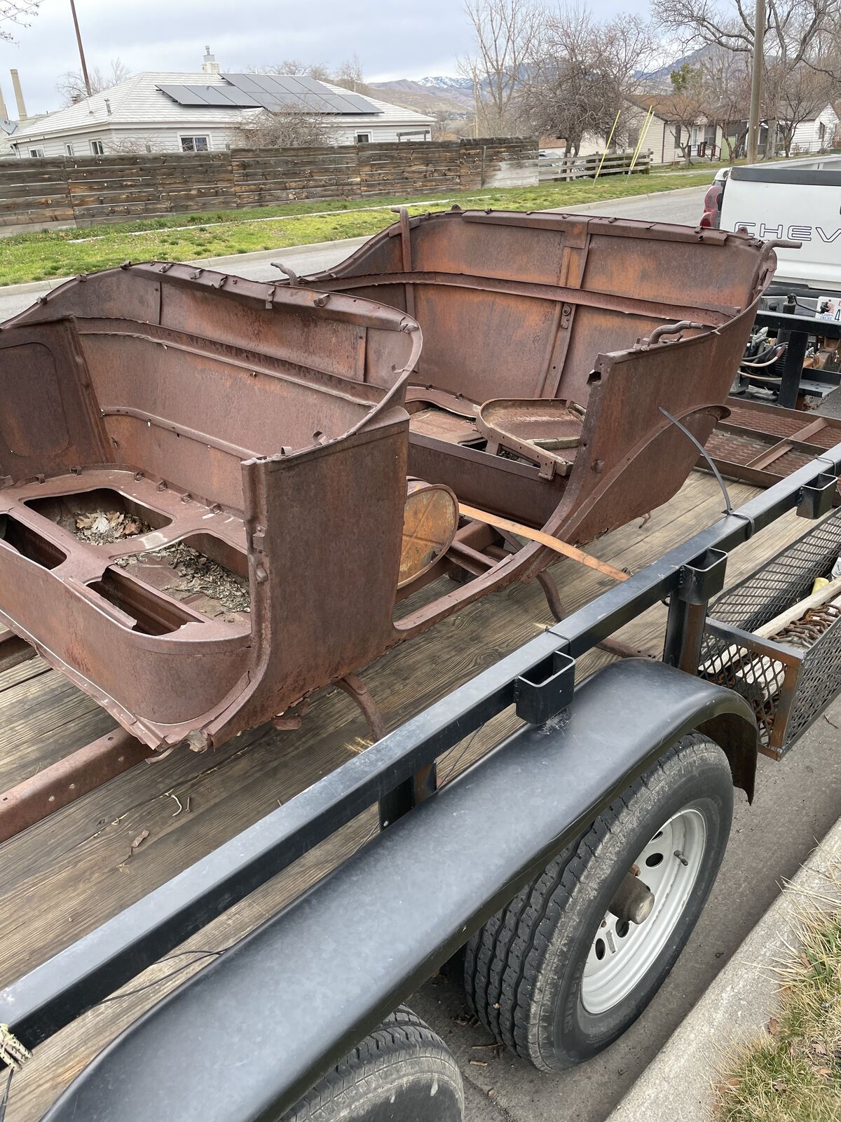 Model T frame great condition for its age and a rough partial body. Build your new Hot Rod.