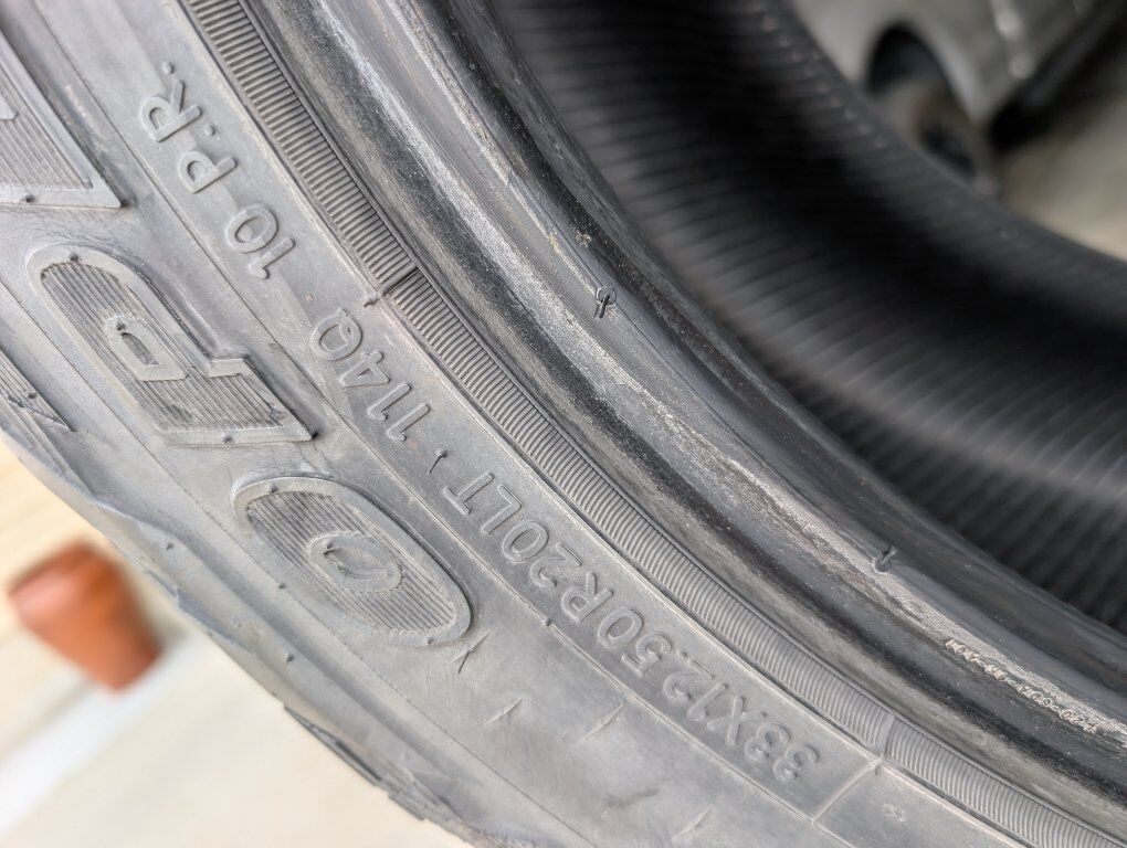 VenmoSet of 4 Toyo Open Country LT 33x12.50R20 with three of them having around 70%-75% tread and one with around 40-50%. $200 for all 4. Note: Selling as is. These tires have little crack lines on them.
