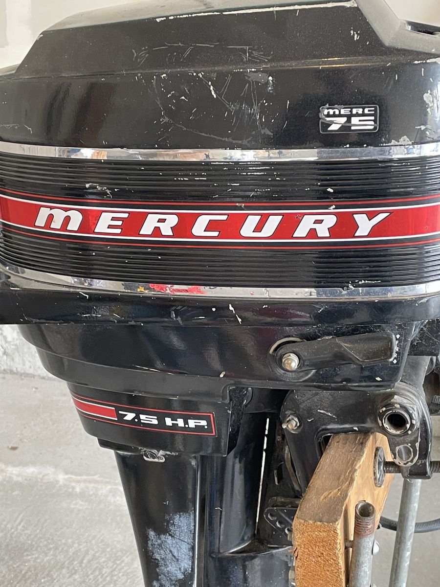 CashAppMercury 7.5 HP Motor. This is (I think) a short shaft motor. It ran fine the last time I tried to crank it, but it's been sitting for almost a year since then. It needs a propeller