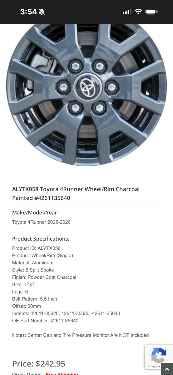VenmoBrand New 2026 4Runner Takeoffs 245/70r17, includes wheels and tires. They sell for $1 ,799 new. Selling for $800 for a quick turnaround due to space in my garage.