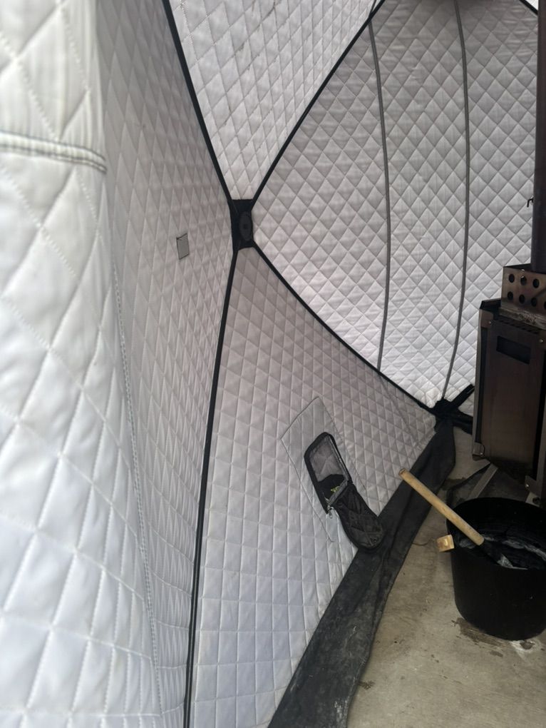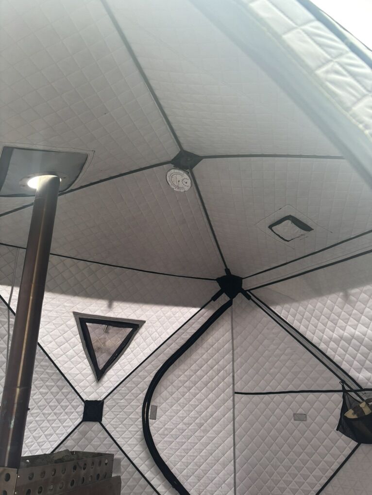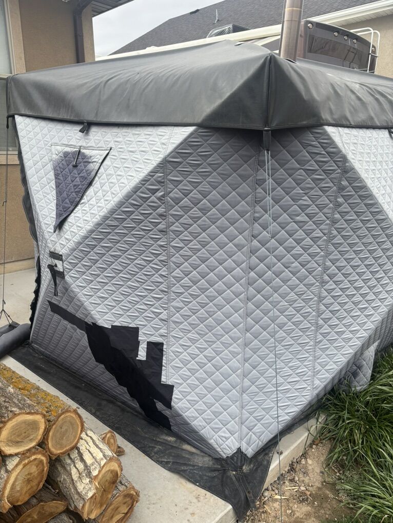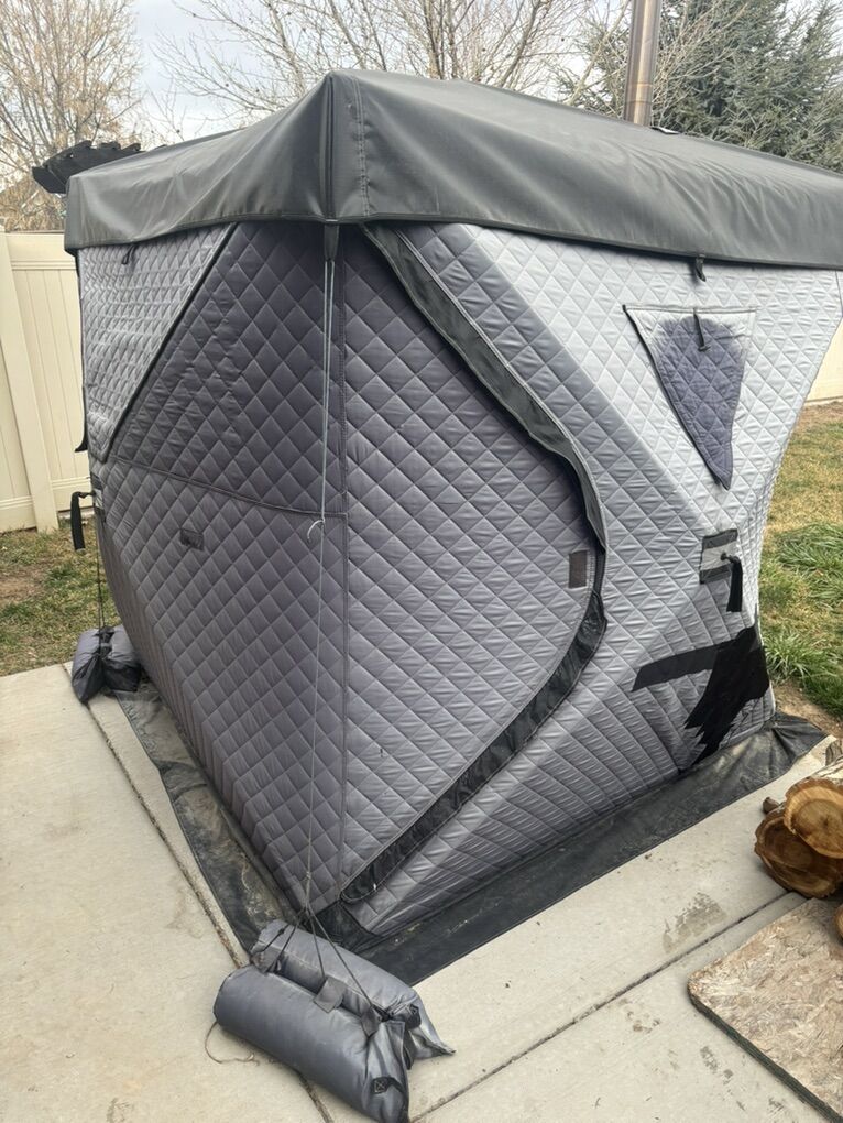 Could be utilized as an ice fishing tent as well. Have the attacker which closes up the roof area where the stove pipe would go.