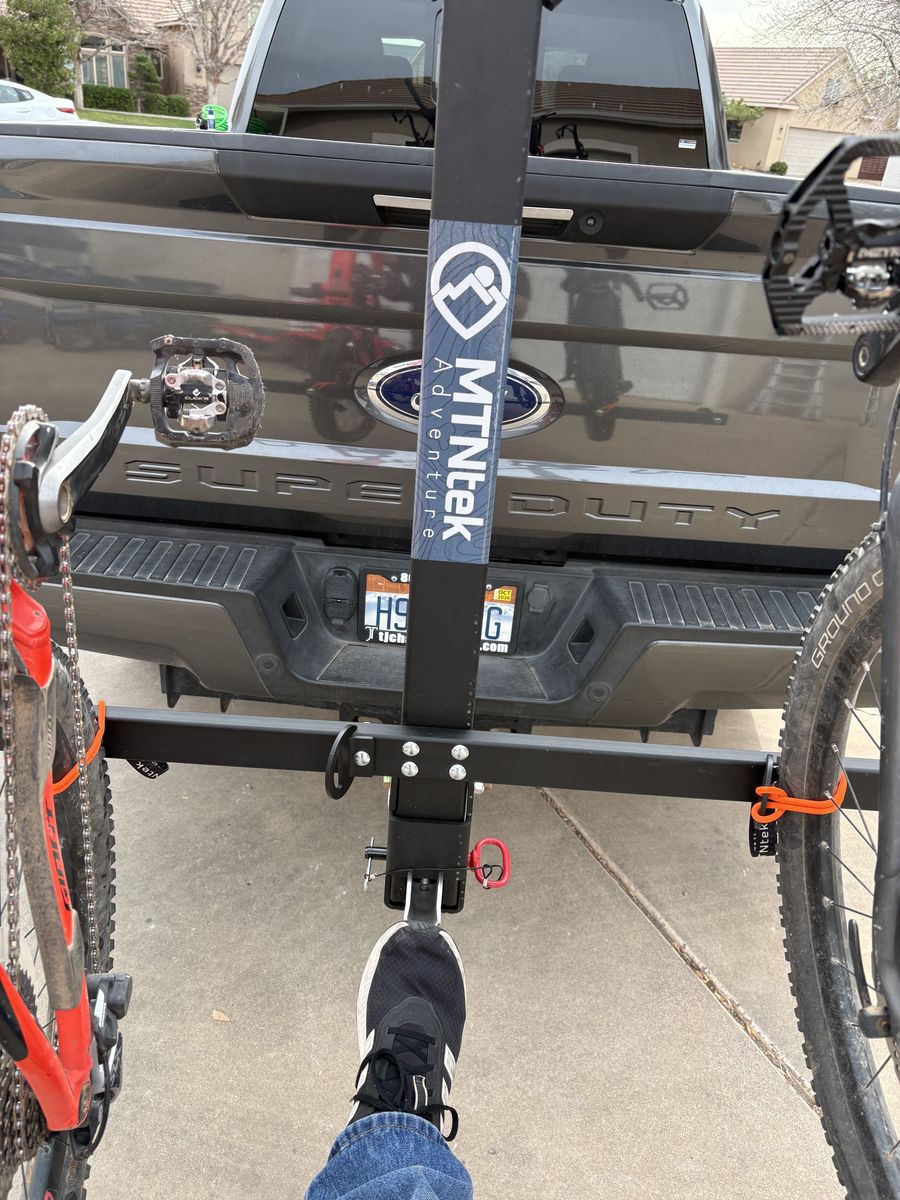 VenmoAwesome bike rack that holds five bikes. Made in Utah here - https://www.mtntekadventure.com. includes the quick foot release to allow you to tilt the bikes down to easily take them off your car. I am also including the locking system so you can protect bikes. It is brand new .. paid 1k in November. I’ve only assembled it and used it exactly one time, but my truck is too tall. Make me an offer and get ready for biking season.