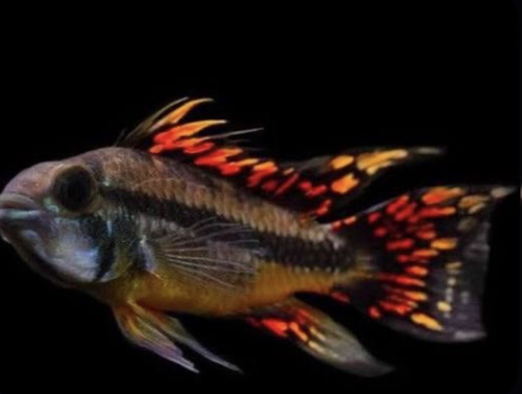 Triple red apisto juvenile (20$ a pair) Borelli apisto juvenile(30$ a pair) Hi-Fin red swordtail juveniles ( 15$ a pair) 7” Marbled gar (70$)