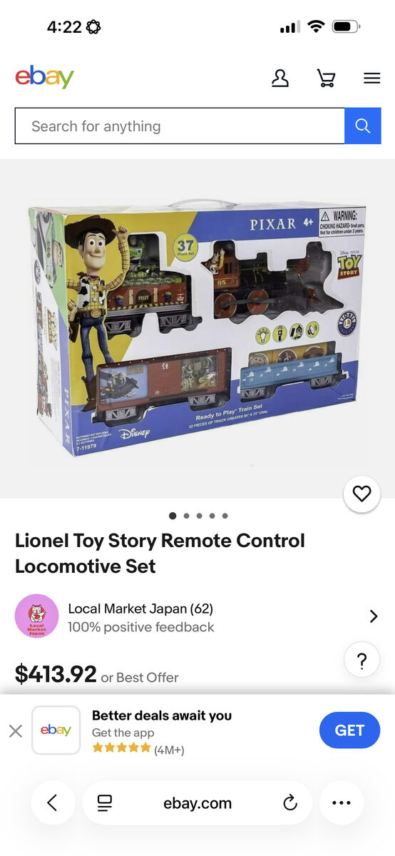 VenmoMake this an early Easter gift for your kids. Lionel Pixar Toy Story R/C controlled train