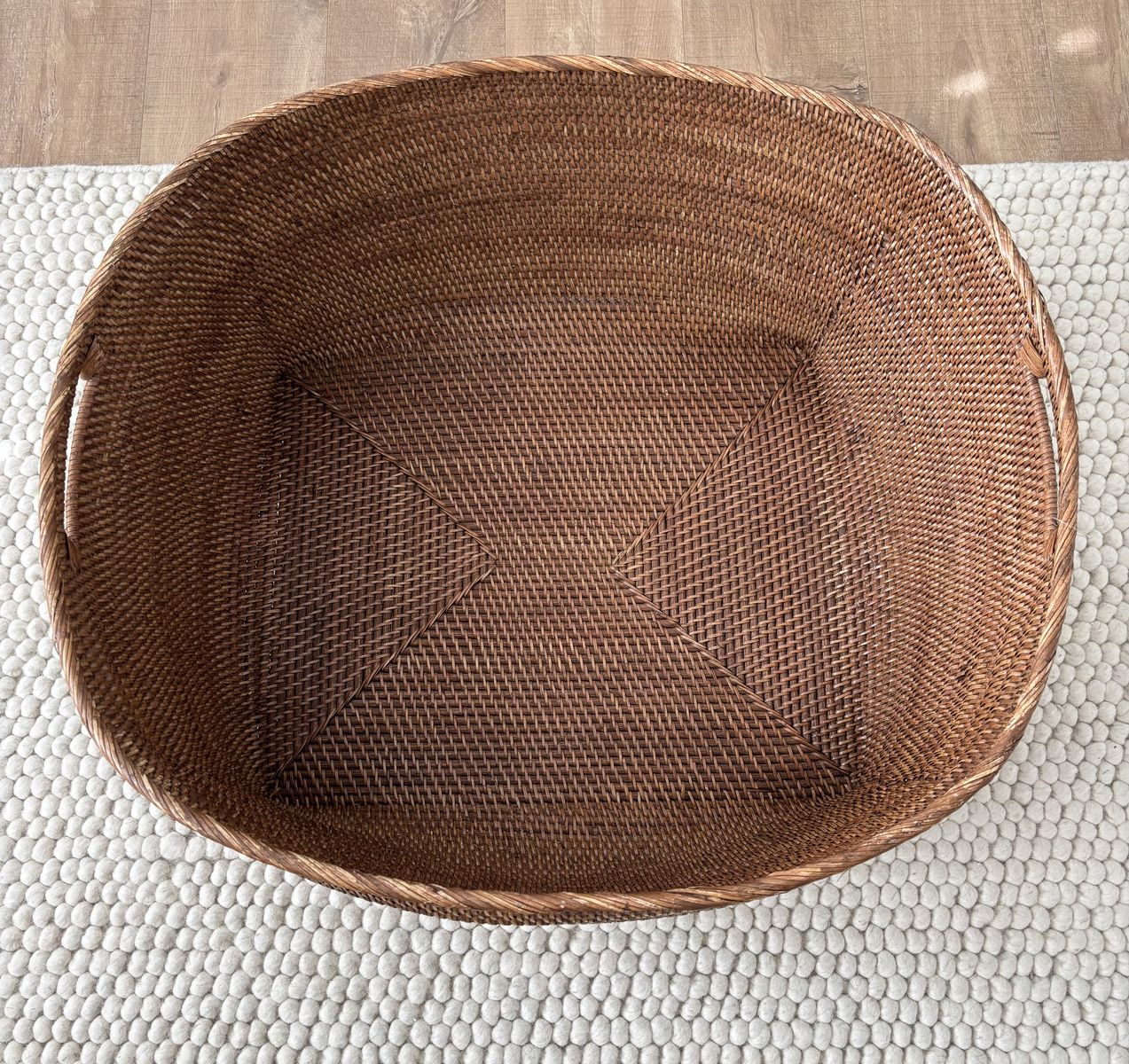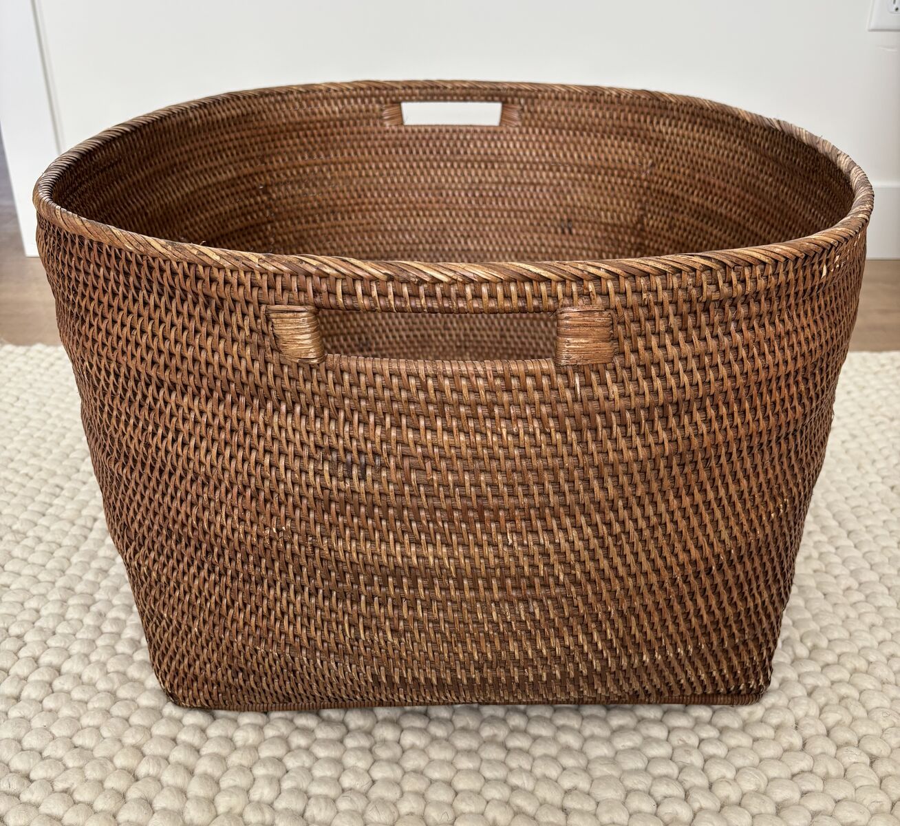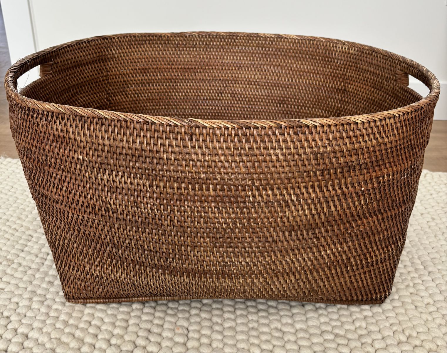 • Beautiful loose weave with sturdy cutout handles for easy carrying