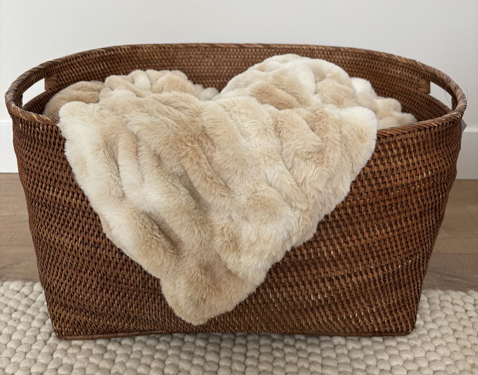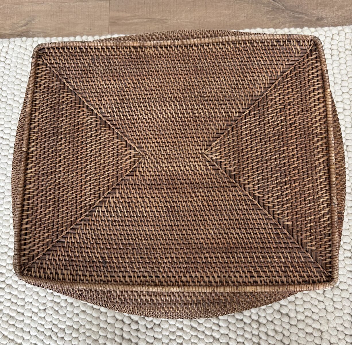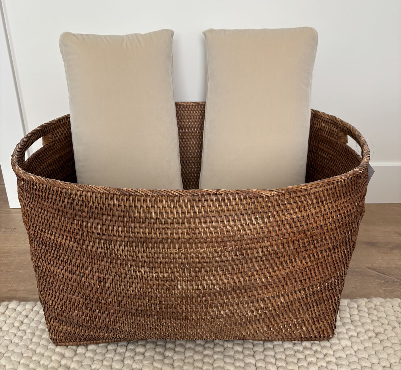 • Beautiful loose weave with sturdy cutout handles for easy carrying