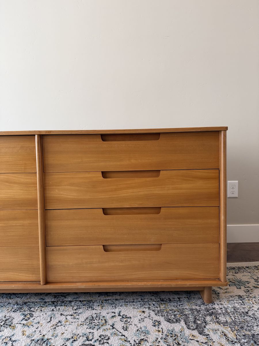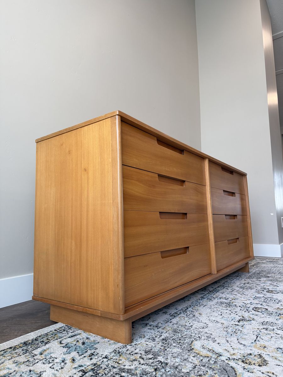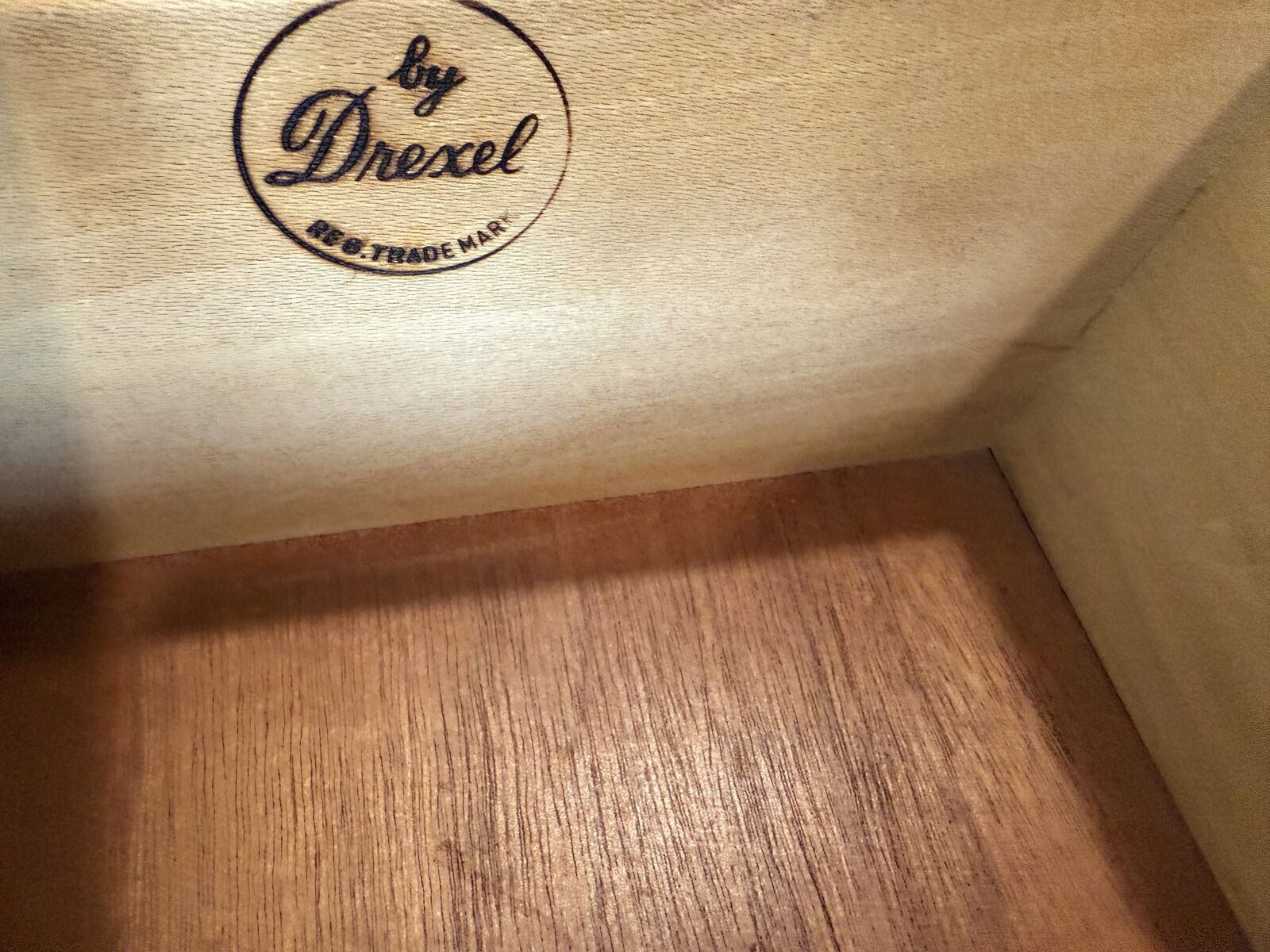 VenmoNow available! This stunning Mid Century Modern Drexel dresser! This piece is all solid wood and built to last. The drawers are all beautiful hand crafted and dove tail. It has been refreshed and sealed with a professional durable satin lacquer. All the drawers operate smoothly and everything is structurally solid! It has graceful age but overall is in great condition. This beauty is ready for its new home! Message me to come look at it:)
