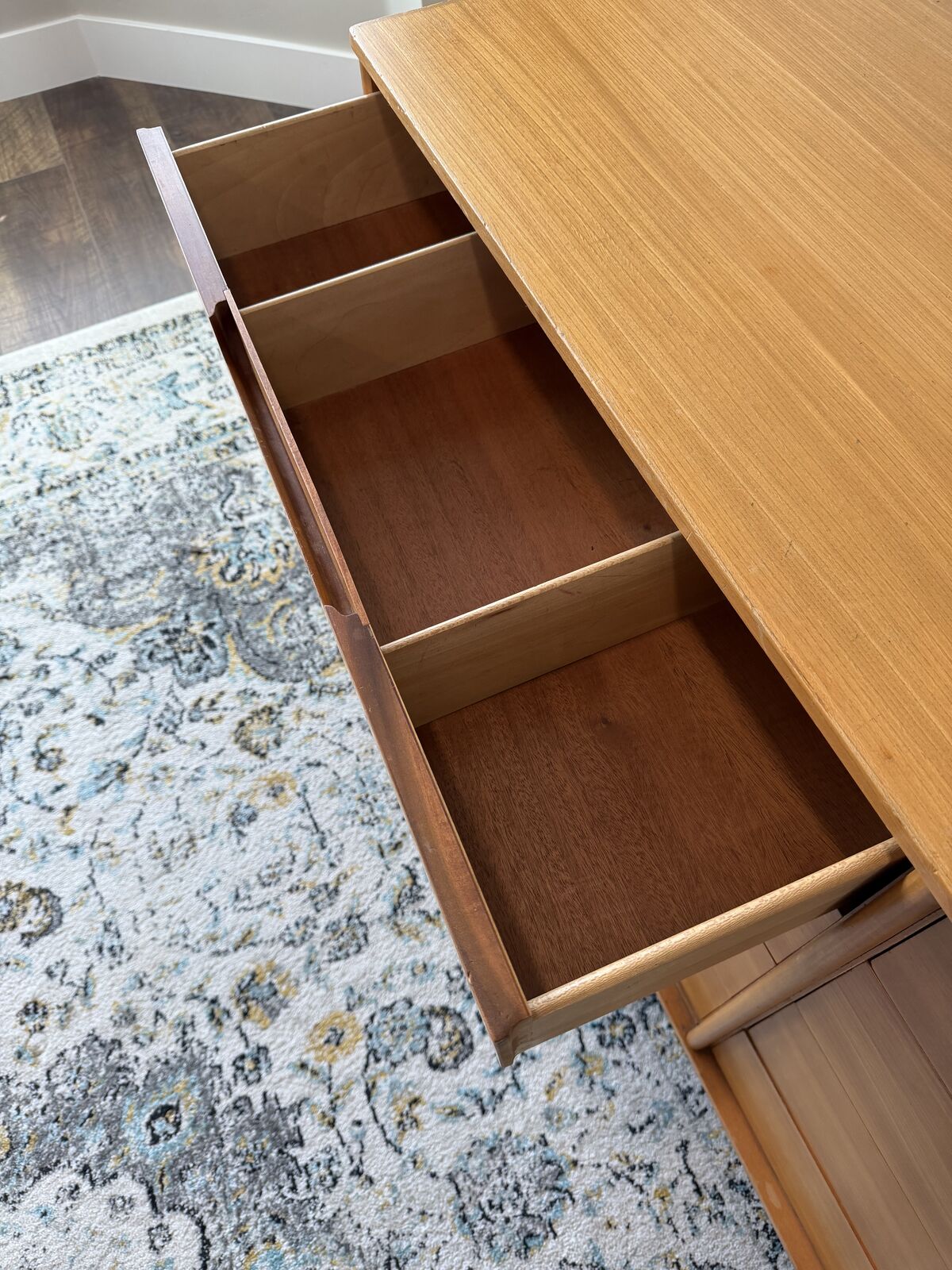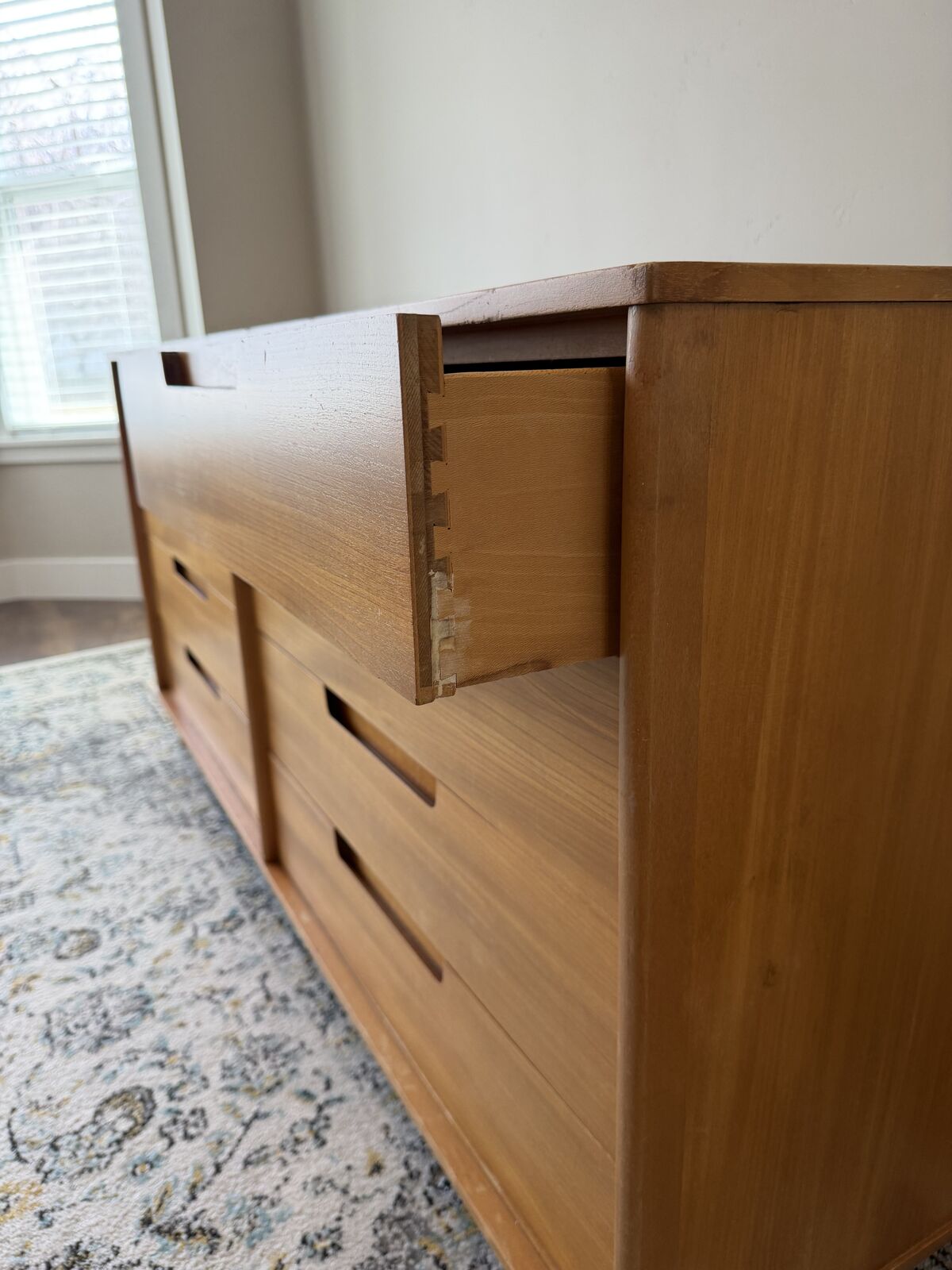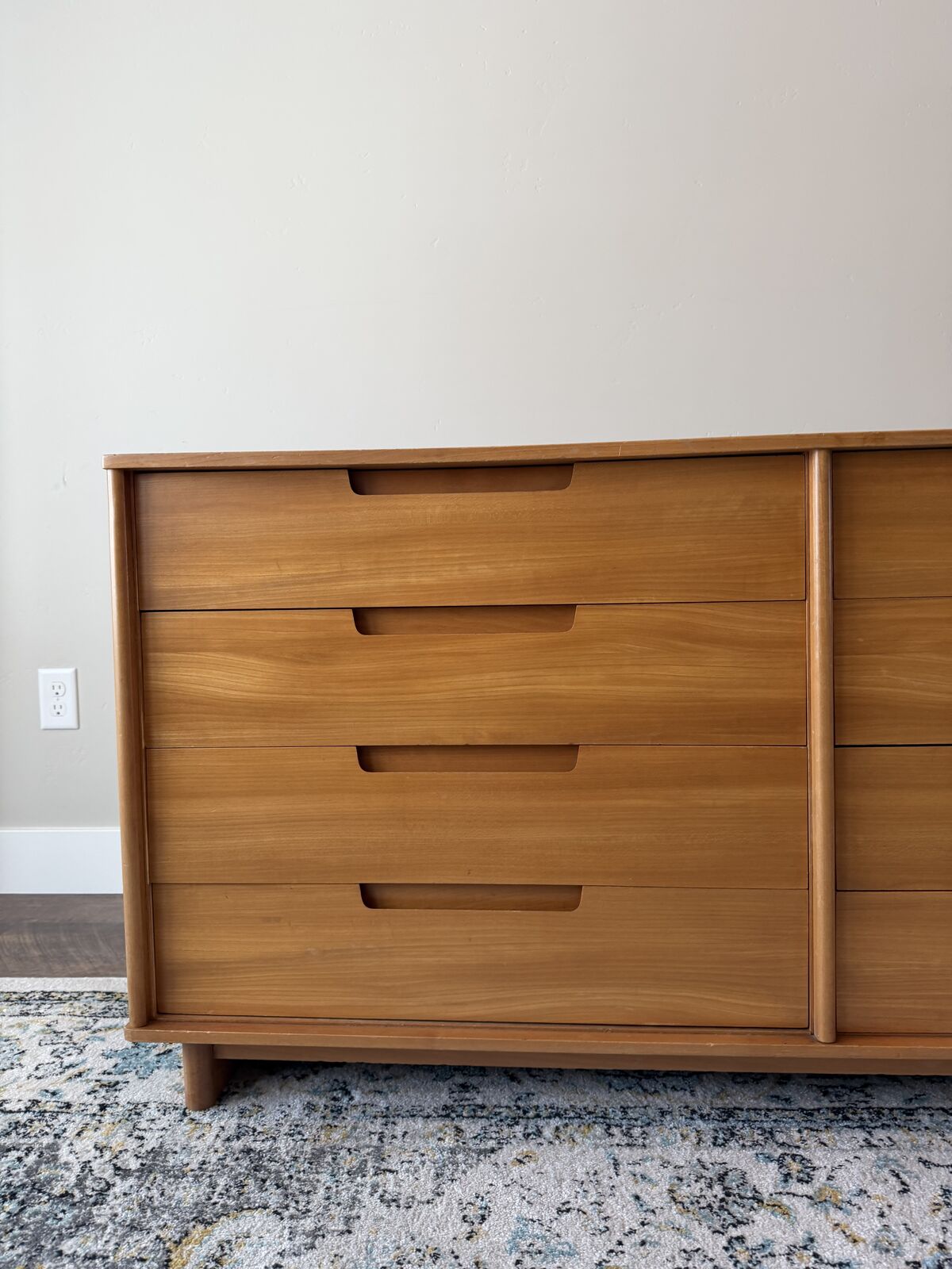 VenmoNow available! This stunning Mid Century Modern Drexel dresser! This piece is all solid wood and built to last. The drawers are all beautiful hand crafted and dove tail. It has been refreshed and sealed with a professional durable satin lacquer. All the drawers operate smoothly and everything is structurally solid! It has graceful age but overall is in great condition. This beauty is ready for its new home! Message me to come look at it:)