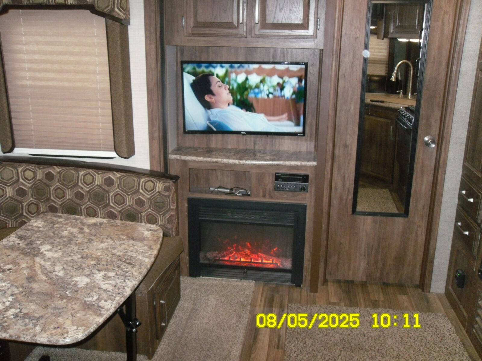 This trailer is in excellent condition with very little use. Living area has two recliners and a loveseat-sleeper. U shaped dinning table which makes into a bed as well. Fireplace and 32 inch tv with stereo system (speakers insde and outside). Kitchen and a stainless steel sink with a pull out sprayer. Large fidge and panty with loads of storage. Bedoom has a Kingbed, two closets and a 32 inch tv as well. Two solar panels on the roof to keep you batteries charged. Back up camera as well. Call or text with questions. Trailer is located in Chbbuck, ID.