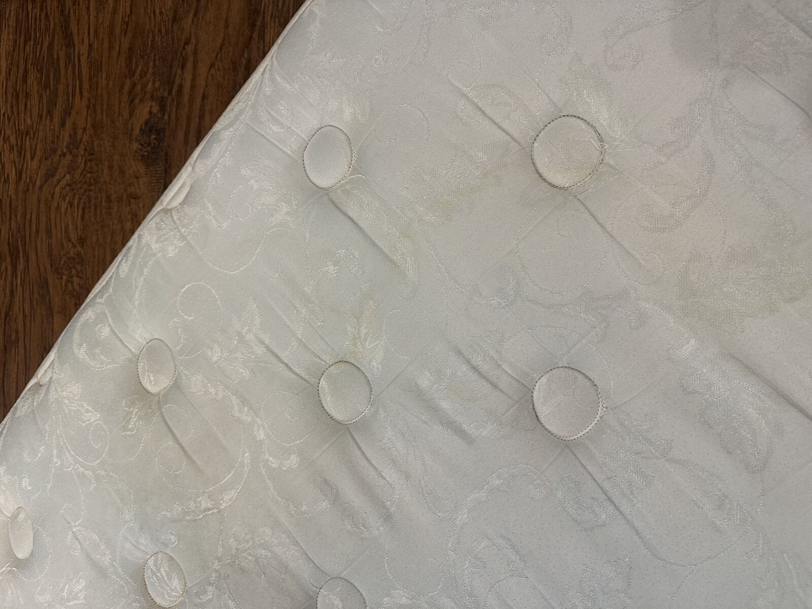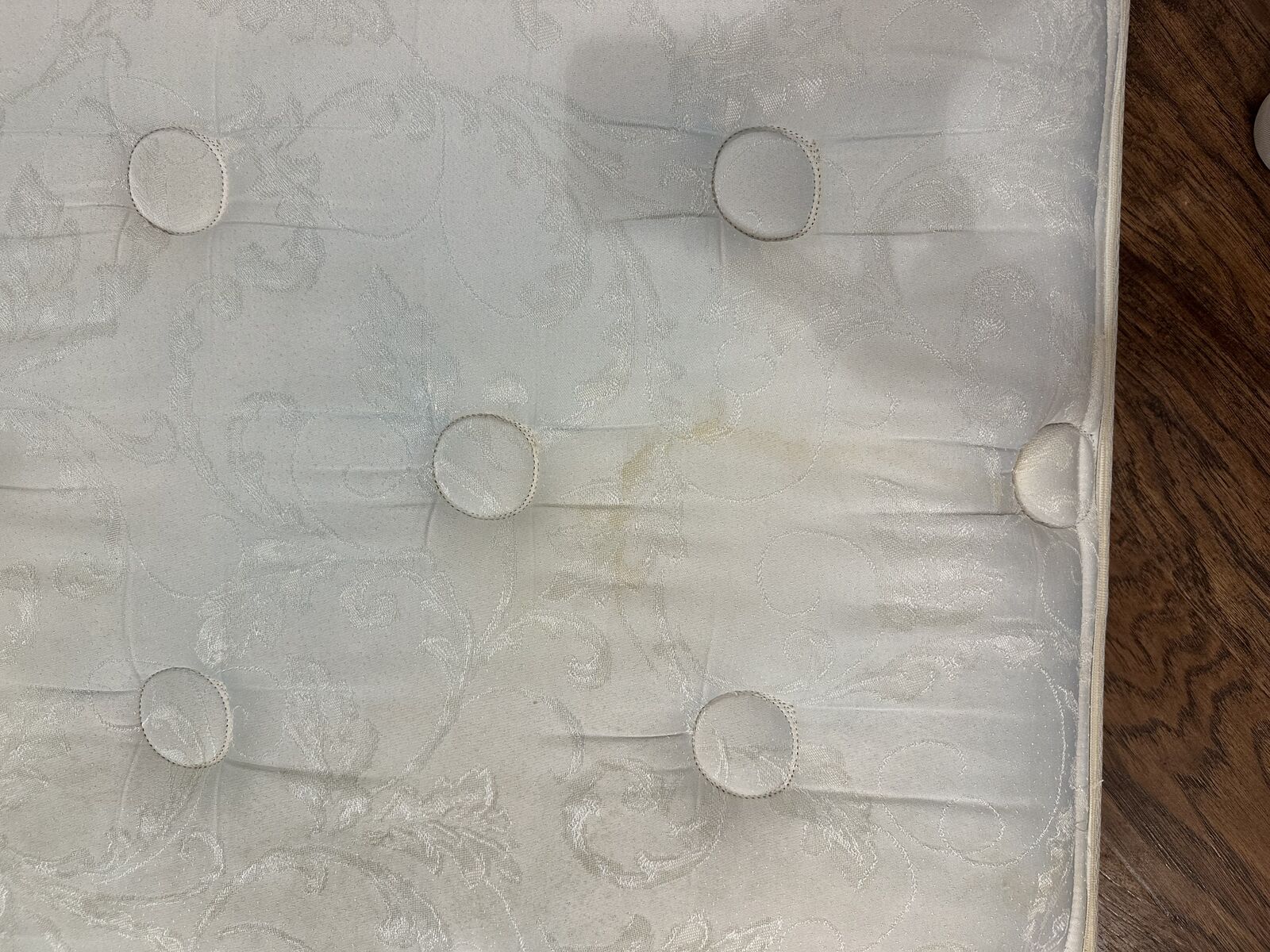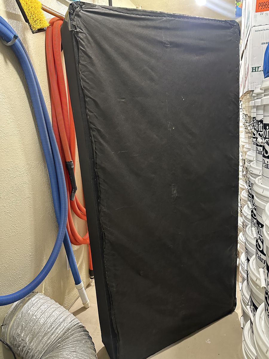 ApplePayTwin size. Black box spring. Mattress has some stains but is still firm and comfortable