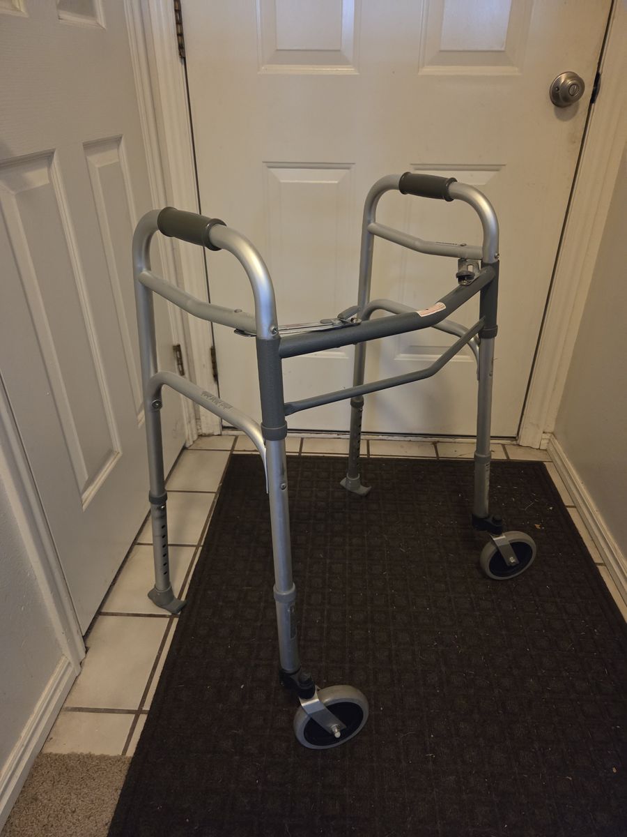 I have one used walker. It is 20 inches across the handles but does not have the stoppers on the back bars, we used tennis balls there. I am asking $10.00 for the 20 inch walker cash only, on pick up.