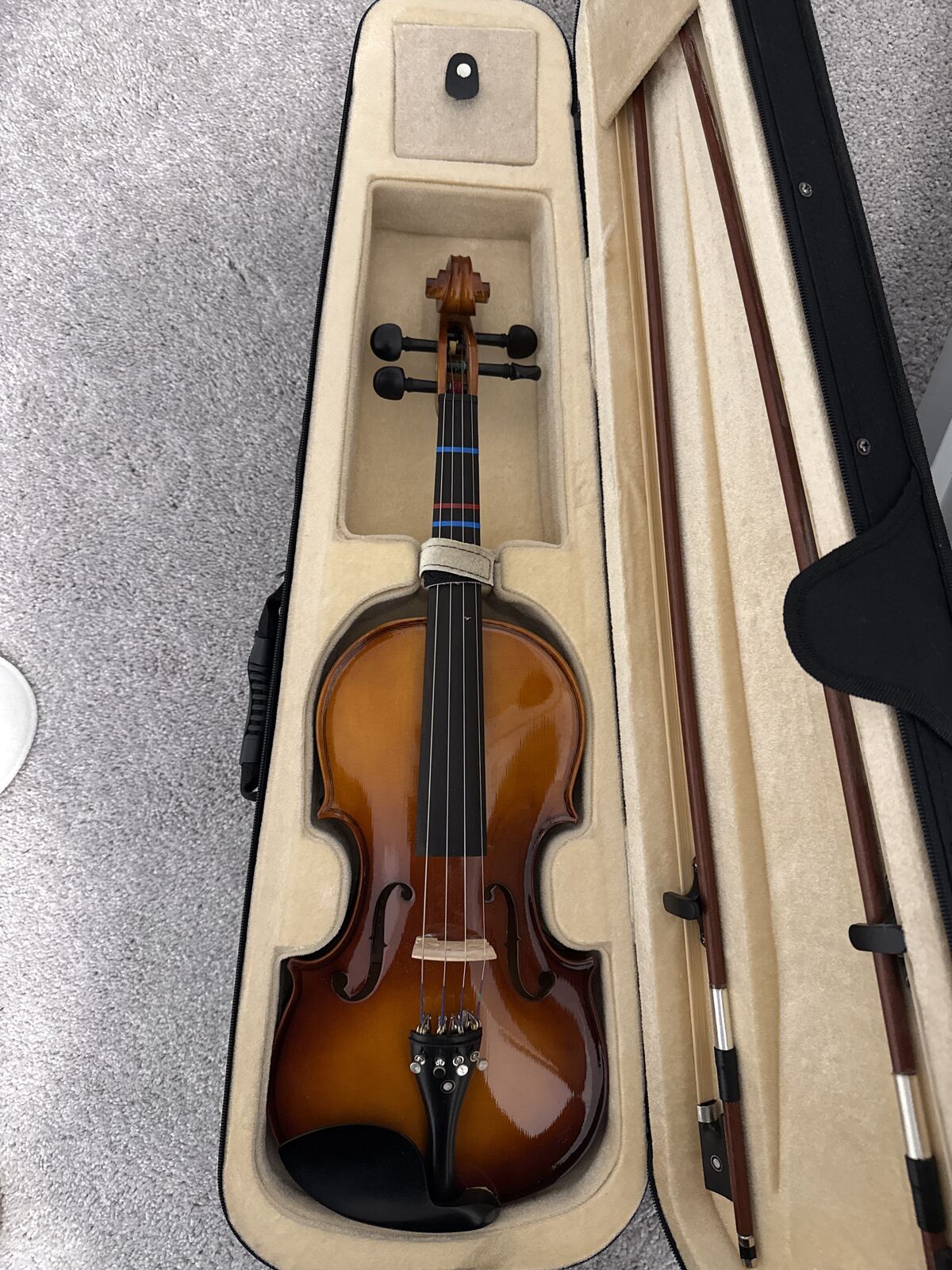 ApplePayPerfect condition! Only used a few times for practice, otherwise brand new. The violin itself, two bows, a block of rosin, and the case are all included!