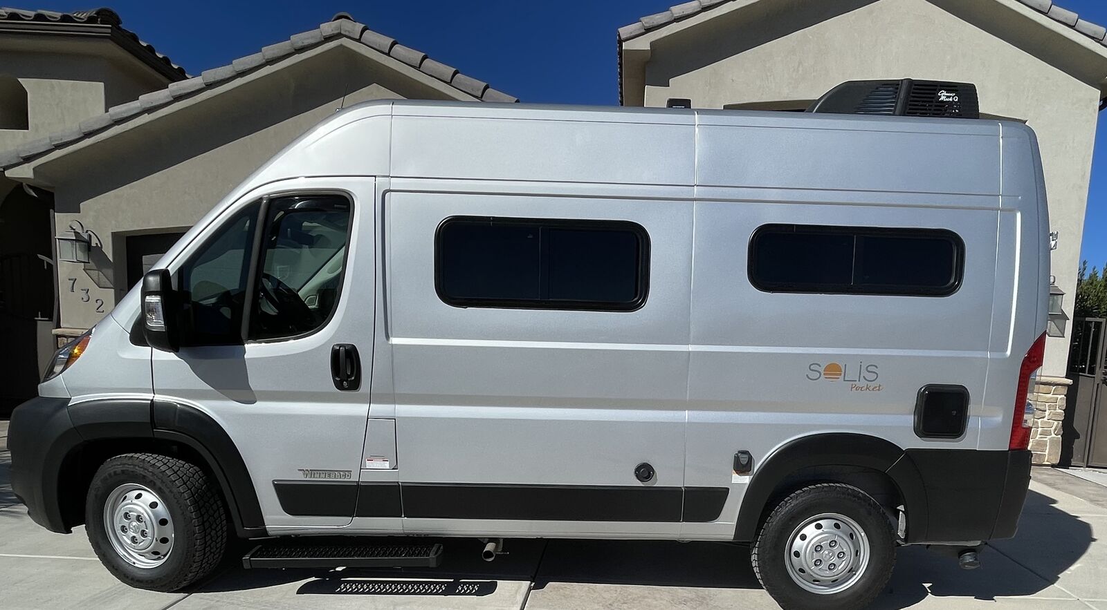 Pristine Solis Pocket 36a 15,503 Miles SOLAR New Tires New Battery Radio/Backup Camera w/sirius LAGUN Table System Bug Guard Drivers Step Up TV Custom Front/Side Cab Window Coverings Fan Inside Cover Passenger Arm Rest..you install Never been camped in so heater, water, stove etc have never been used. I do have professional inspection from my purchase on request Primarily Freeway Miles