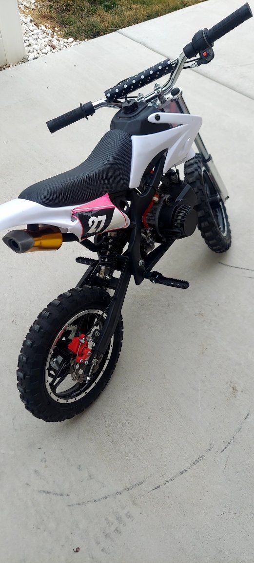 VenmoOrion 49cc kids mini dirt bike, an entry-level, 2 sroke air cooled, pull start, kill switch, desing for beginners, automatic transmission, a 20 to 30 mph, ideal for children 6-12 to learn, weight limit capacity 143 lbs brand new my kids did not show interest text for more info thanks for looking. $280 obo.