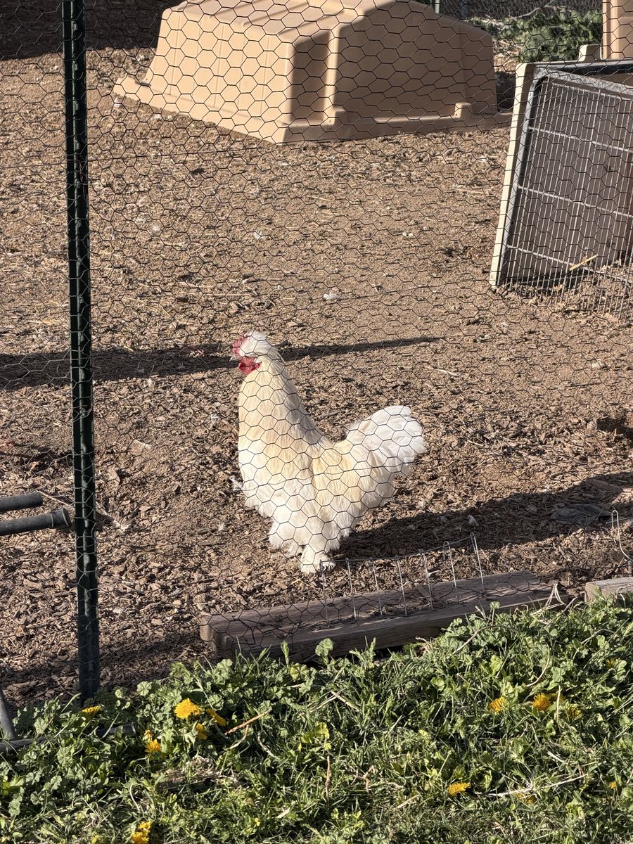 VenmoI have four bantam roosters available. One is a mix of showgirl satin and sebright, he has very pretty pattern and he is very small! One is a silkie mix silkie, black with a silver neck. One is a white silkie mix. And the last one is a satin showgirl mix, white and a little bit bigger.