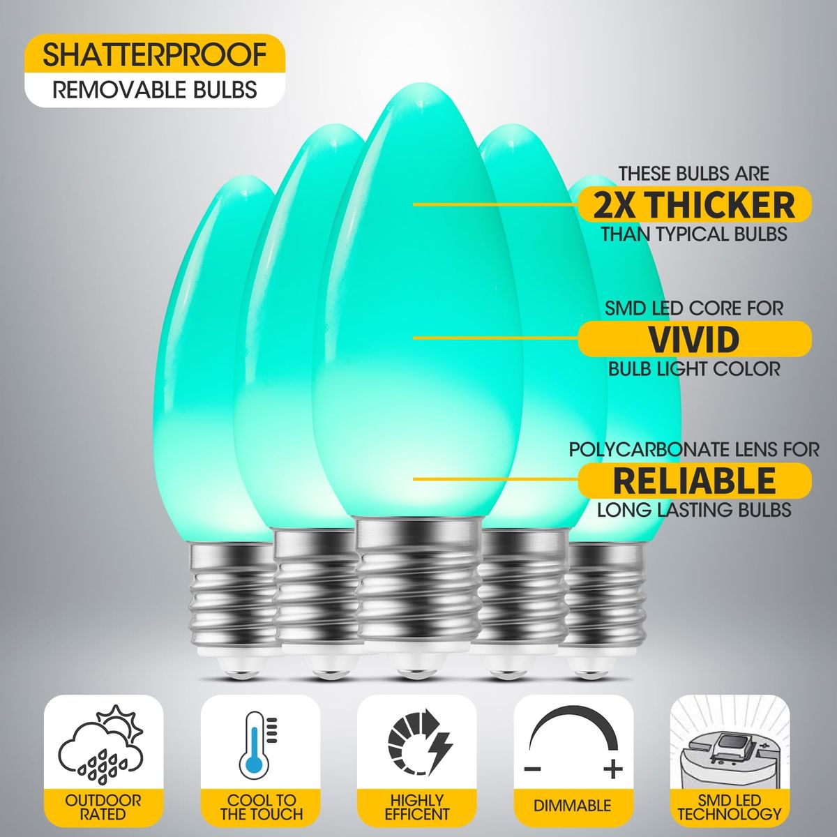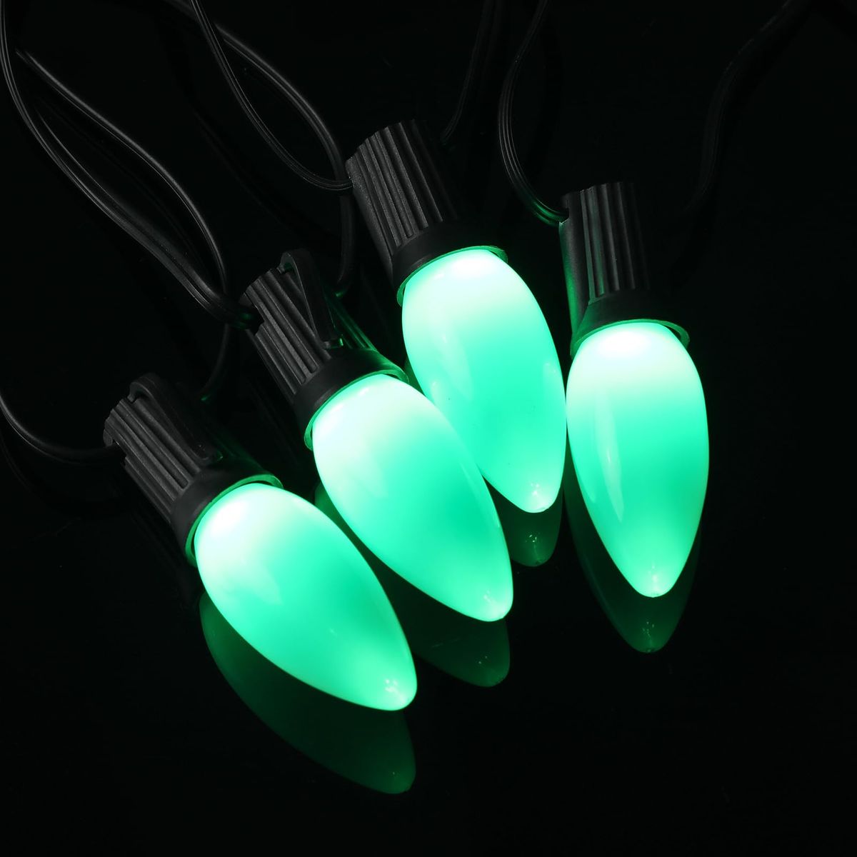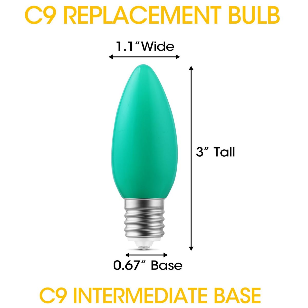 ApplePayVISTERLITE 25-Pack Ceramic C9 Christmas Light Bulbs, Green LED Light Bulbs Holiday Decoration, Green Christmas Decor for Indoor & Outdoor Use, E17/C9 Intermediate Base