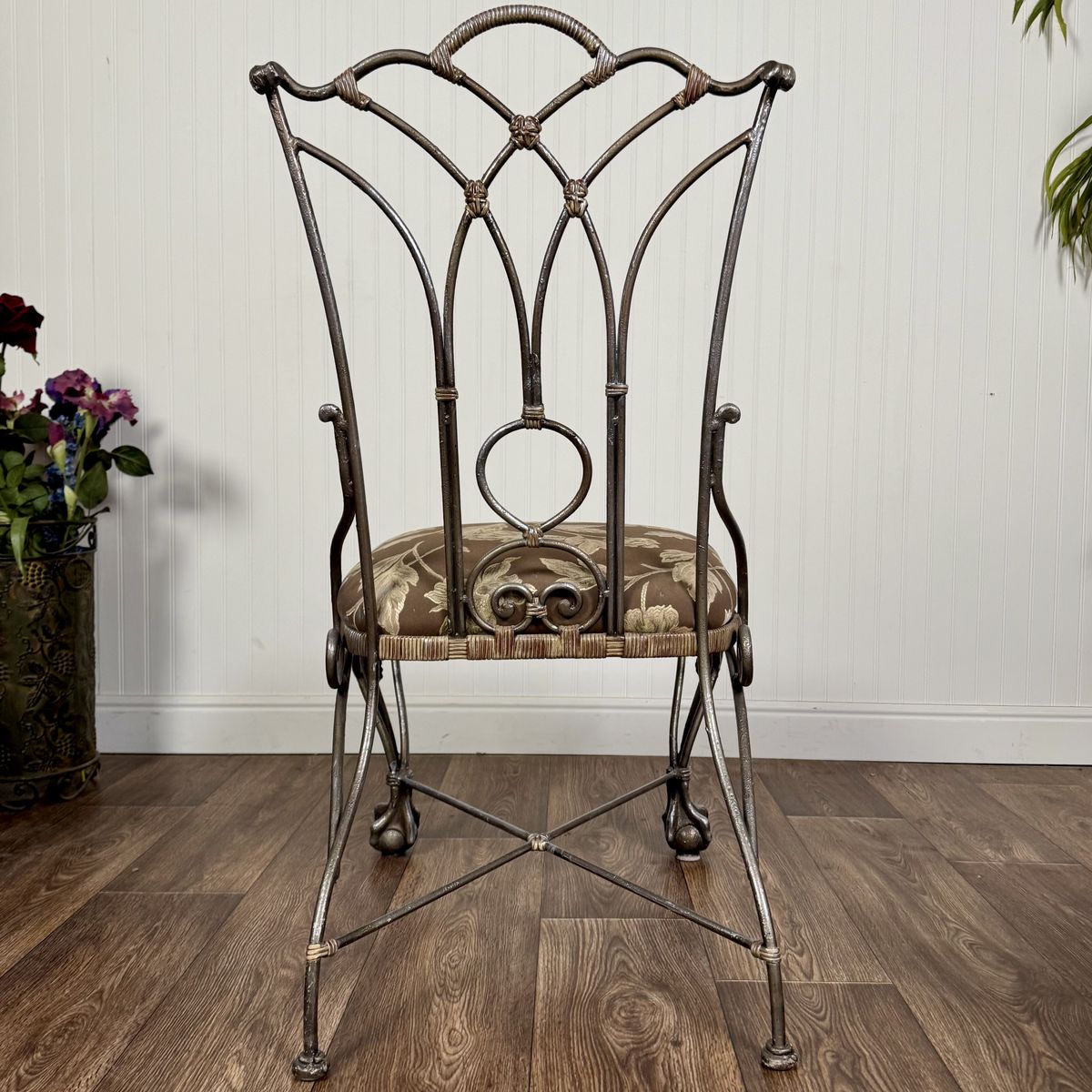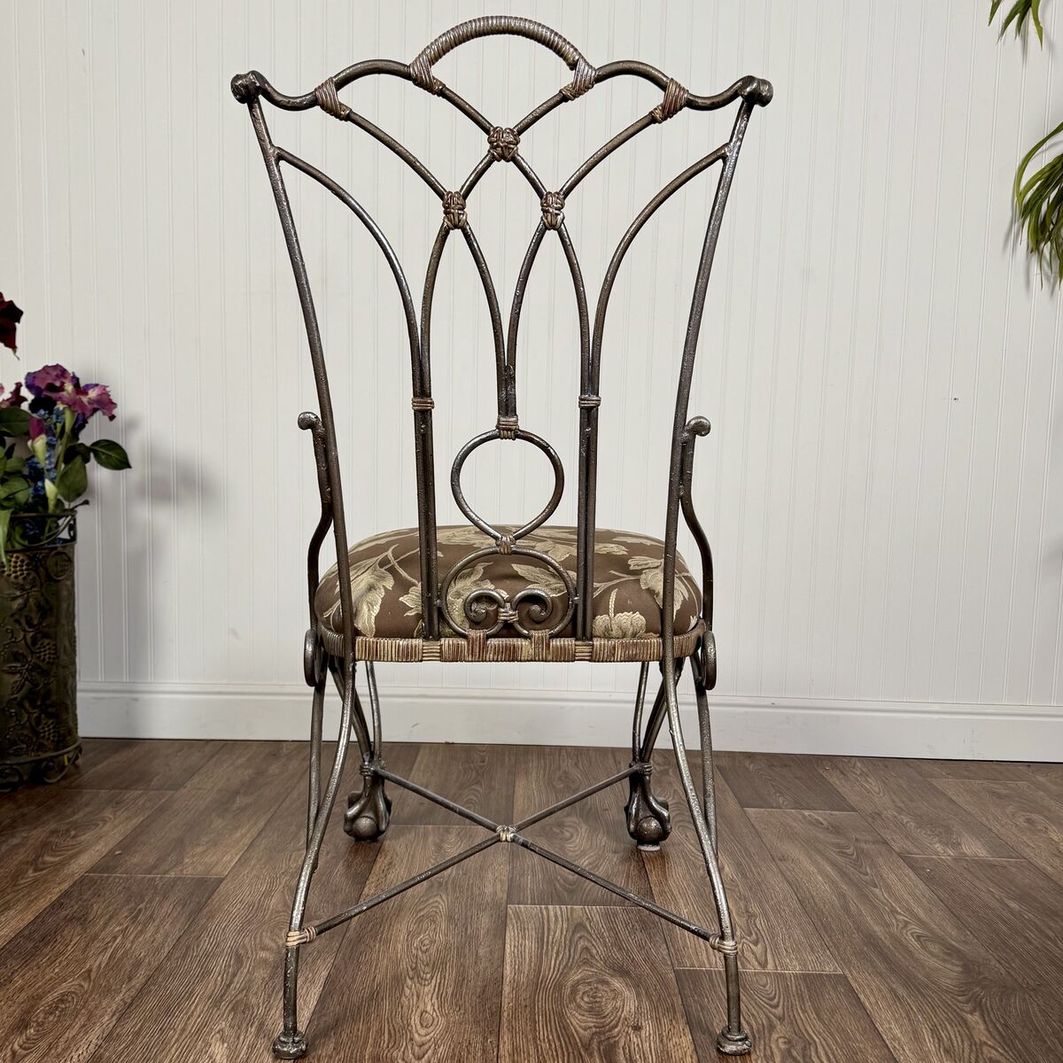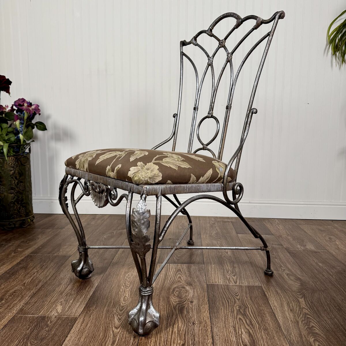 VenmoHeavy cast iron chair with ornate scrollwork, claw feet, and decorative shell detail. This piece has a romantic European garden feel and works beautifully in an entryway, bedroom corner, vanity setup, or covered patio. The silver finish also lends itself to more contemporary glam styles.