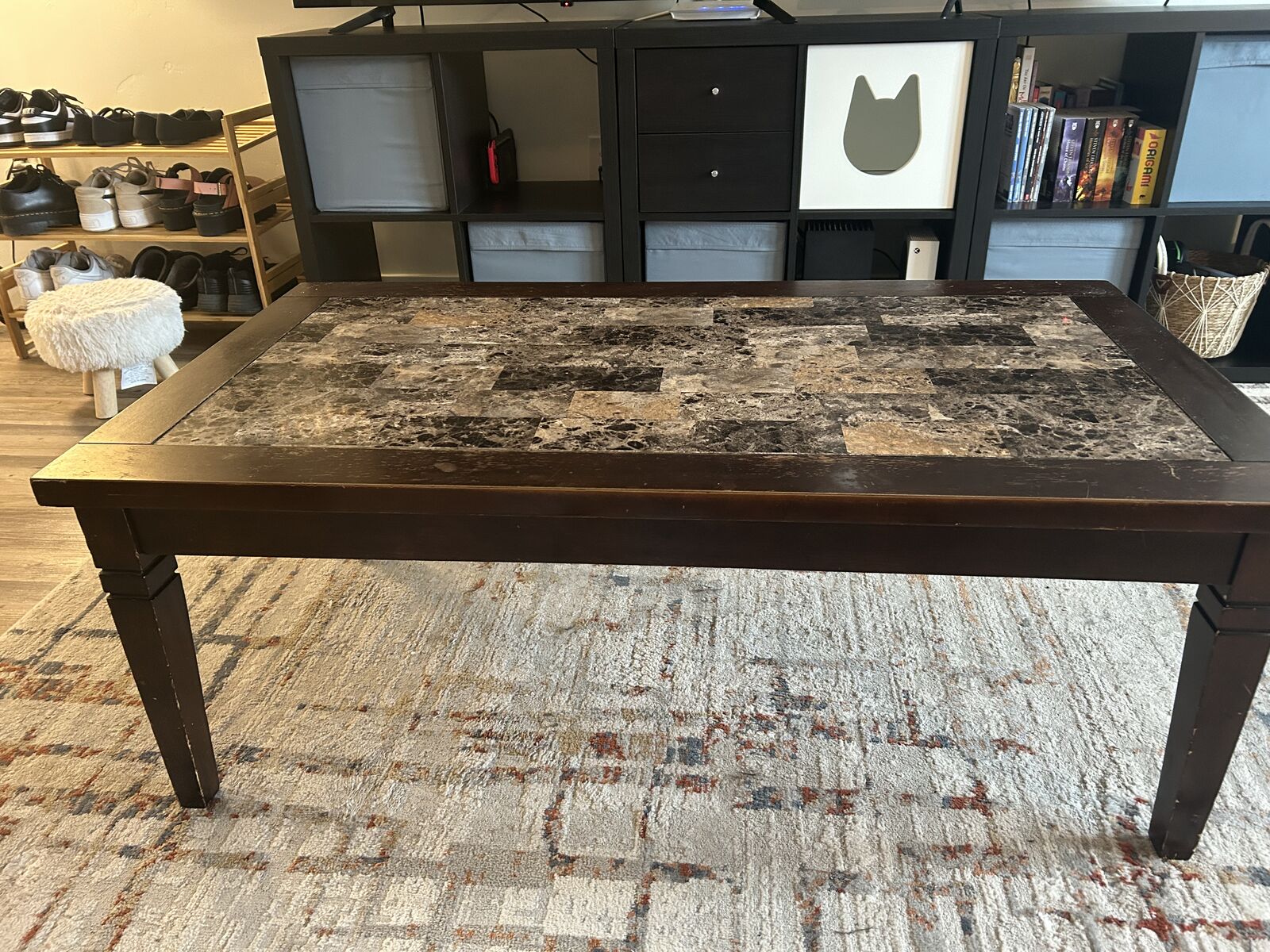 PayPalPENDING 47.5x28 Top of table has some scratches but is solid and stable. Must be available to pick up.