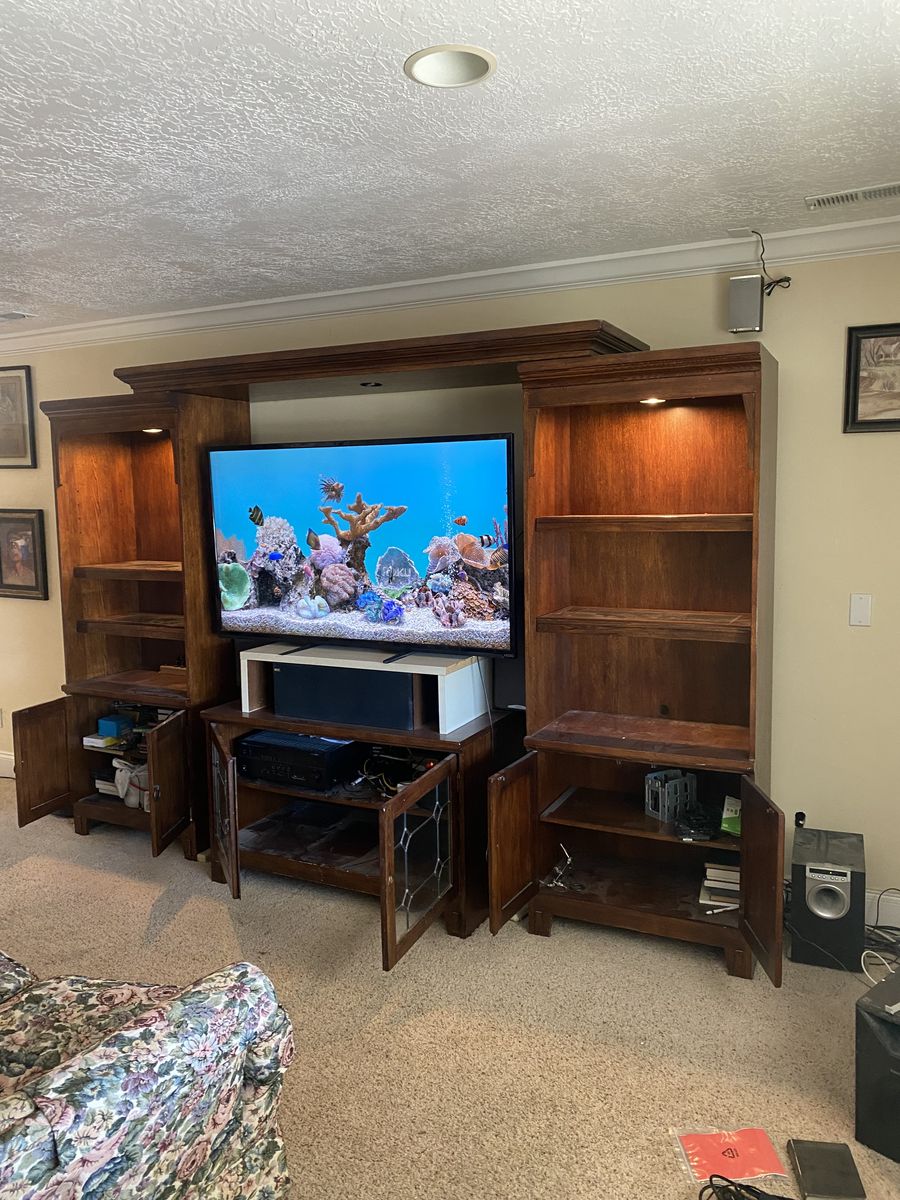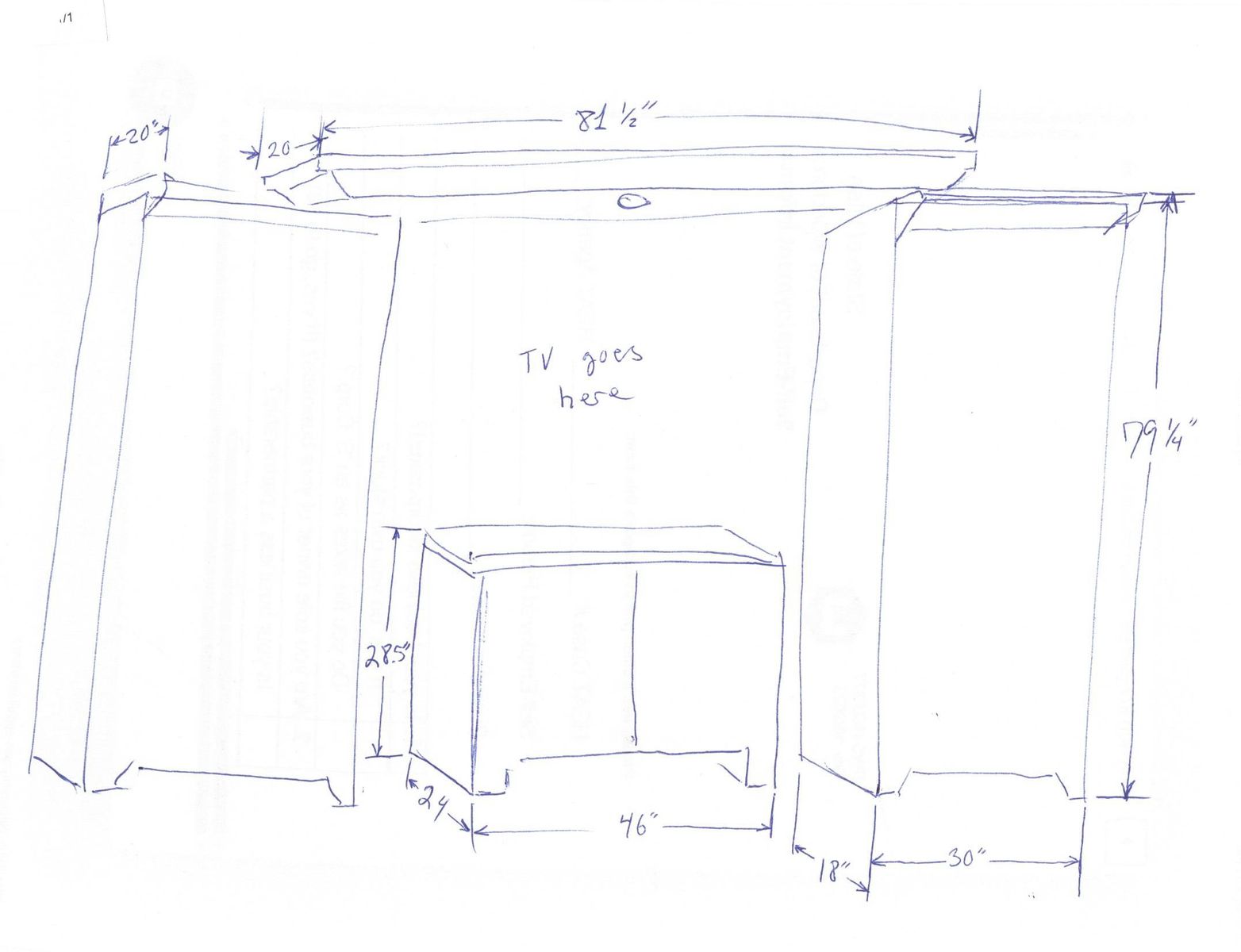 Center peice is 28,1/2" tall, 46" wide and 24" deap. (See final picture)