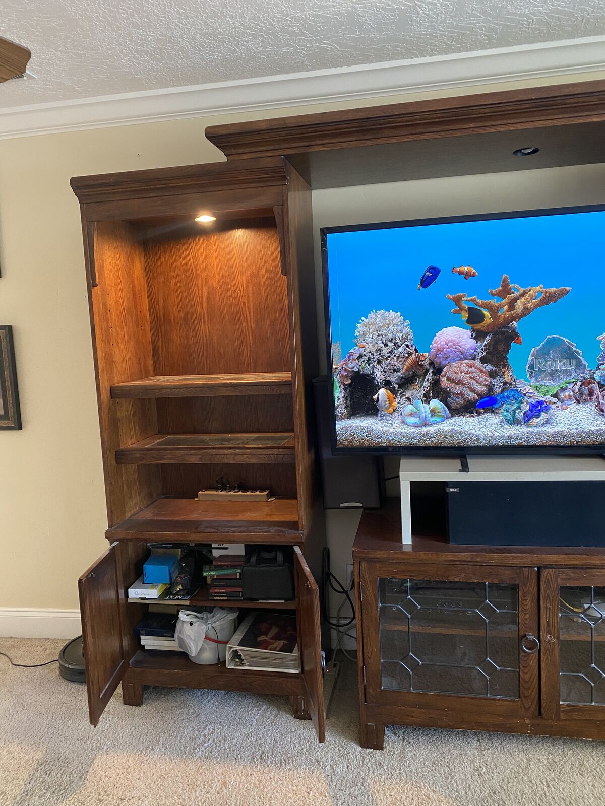 ZelleThe side peices can slide wider for bigger TVs.